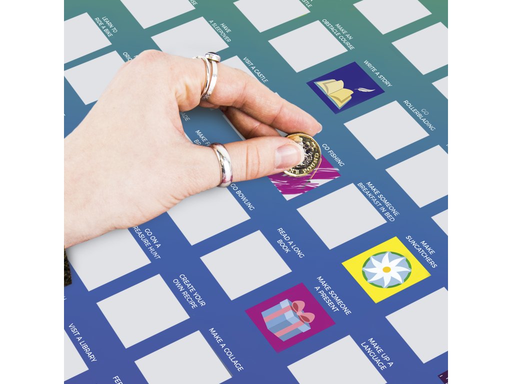 Hlavním lákadlem je interaktivní a motivující provedení: jakmile každou aktivitu dokončíte a zažijete, stačí ji seškrábnout! Pod stírací vrstvou se skrývá barevná připomínka vašeho úspěchu. Tato vizuální odměna zvyšuje motivaci a dělá z plnění seznamu zábavný a návykový zážitek. Každý seškrábnutý políčko představuje nový zážitek, novou dovednost nebo pomoc, kterou jste poskytli. Seznam tak funguje nejen jako průvodce aktivitami, ale i jako deník vašich úspěchů a dobrých skutků, který vás bude neustále hnát kupředu k dalším výzvám a osobnímu růstu. Je to skvělý způsob, jak vizuálně sledovat svůj pokrok a slavit každé vítězství, malé či velké.