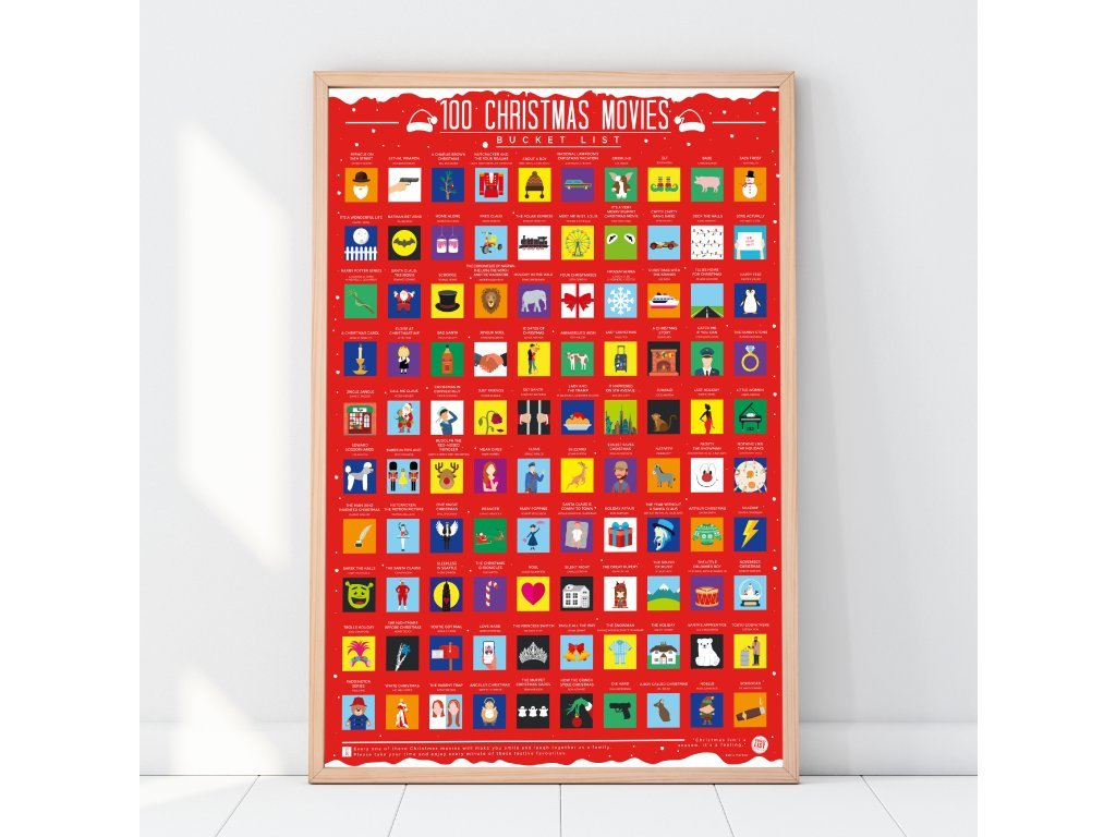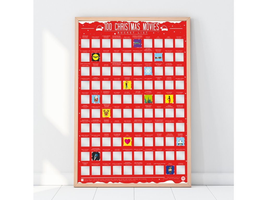 Nečekejte a proměňte sváteční období v nezapomenutelný filmový maraton. Stírací plakát je jedinečným doplňkem pro vánoční výzdobu a skvělým tipem na originální vánoční dárek, který zaručuje hodiny zábavy a společně strávený čas s vašimi blízkými. Plakát obsahuje pečlivě vybranou stovku filmů, které dokonale navodí tu pravou sváteční atmosféru. Pořiďte si tento stírací plakát s vánočními filmy ještě dnes a přineste do svého domova nekonečnou inspiraci pro sváteční pohodu, radost a ty nejlepší vánoční vzpomínky.