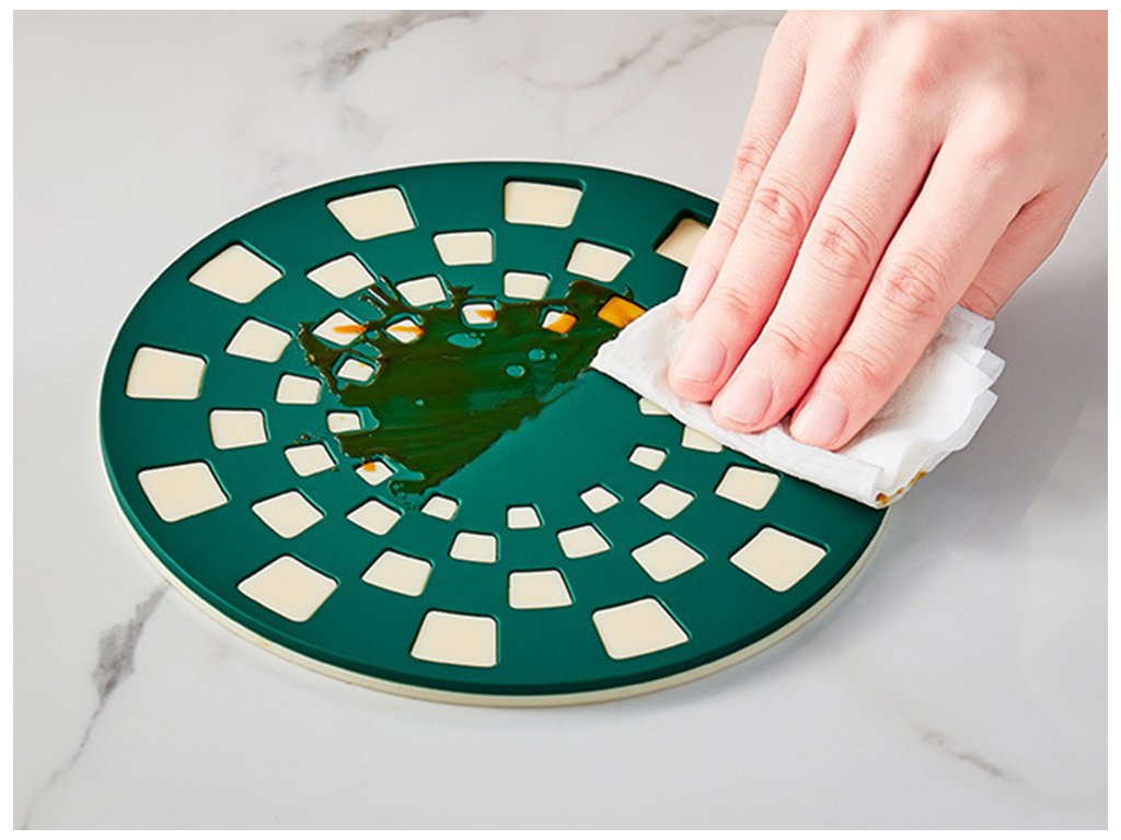 Podložka je vyrobena z vysoce kvalitního silikonu a vykazuje tepelnou odolnost - neroztaví se, nedeformuje ani nevypouští pachy. Lze ji bezpečně používat pod nádobí vyjmuté přímo ze sporáku nebo trouby bez obav z poškození pracovních ploch.