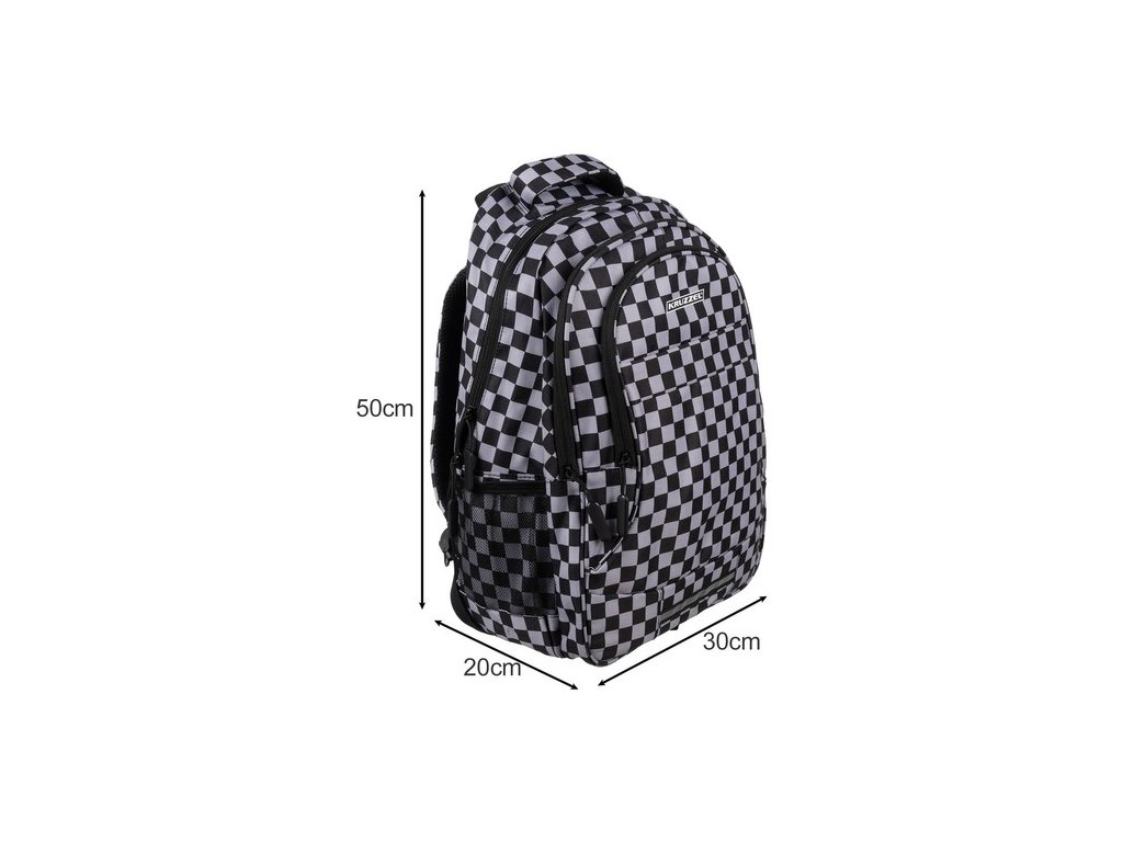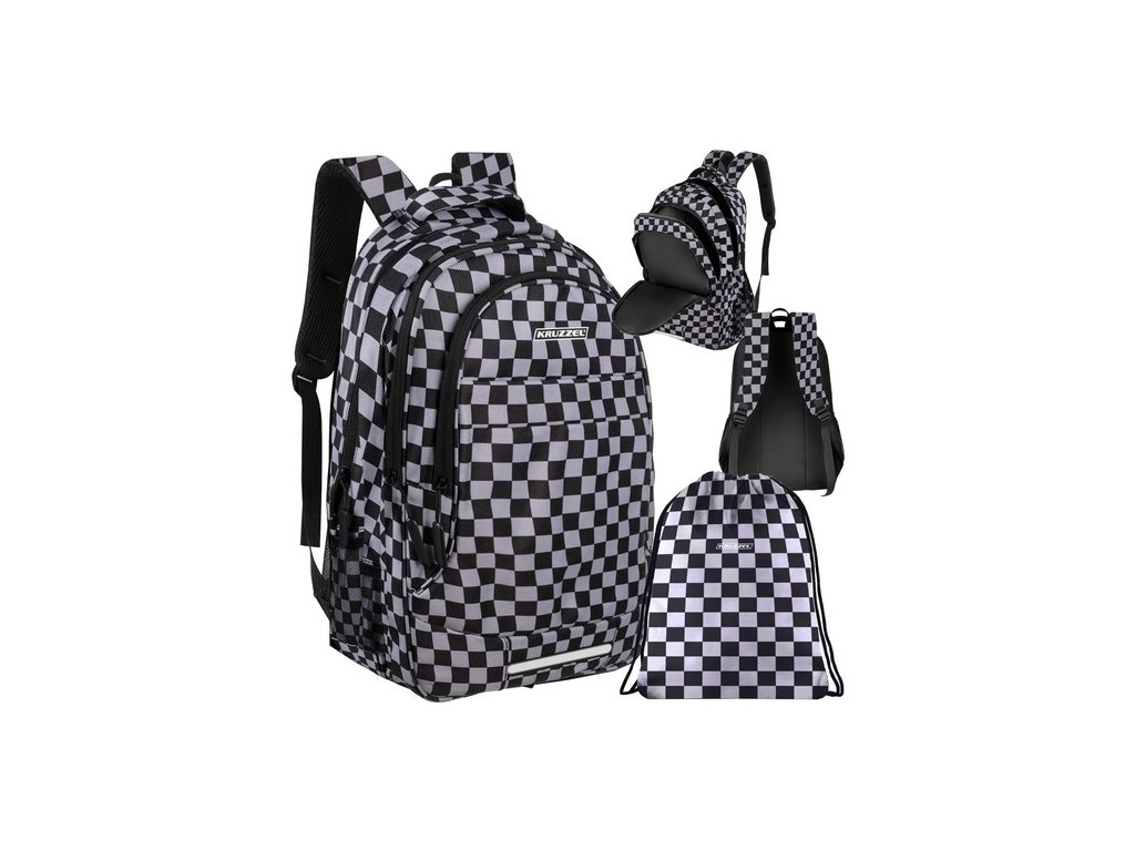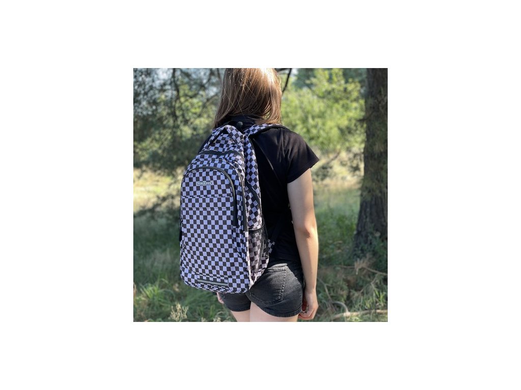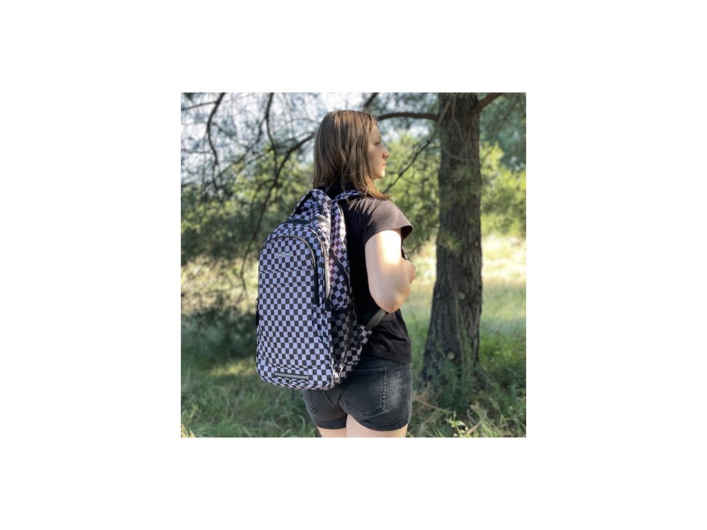 - PROMYSLENÉ VNITŘNÍ ORGANIZACE + REFLEXNÍ PRVKY - batoh má prostornou hlavní komoru, zapínanou na zip se dvěma jezdci , což umožňuje pohodlné otevírání a zavírání. Nachází se uvnitř velká vyztužená kapsa , ideální pro přenášení notebooku, notebooku nebo tabletu, poskytuje jim dostatečnou ochranu proti poškození. Kromě notebooku si zde můžete uložit i knihy a sešity. 2 přihrádka je určen pro ploché a velké doplňky, jako je podložka na kreslení nebo umělecká díla na přední straně batohu existuje také kapsa , která je ideální pro zabalení oběda nebo uložení drobností, jako jsou klíče, telefon nebo peněženka. Pod kapsou je reflexní proužek , který zajistí viditelnost a bezpečnost uživatele za soumraku. Designový kostkovaný vzor dodává batohu jedinečný charakter. Je funkční a stylový, bude dokonale odrážet osobnost a styl uživatele .