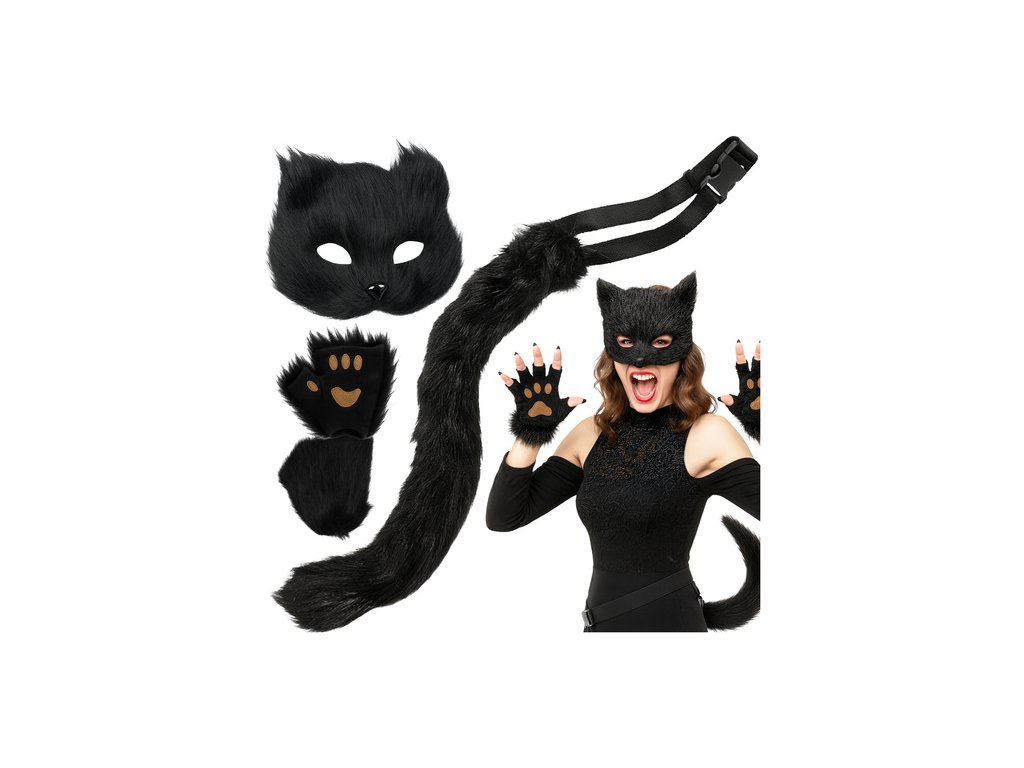 - kompletní sada 4 v 1 - maska, ocas a kočičí tlapky