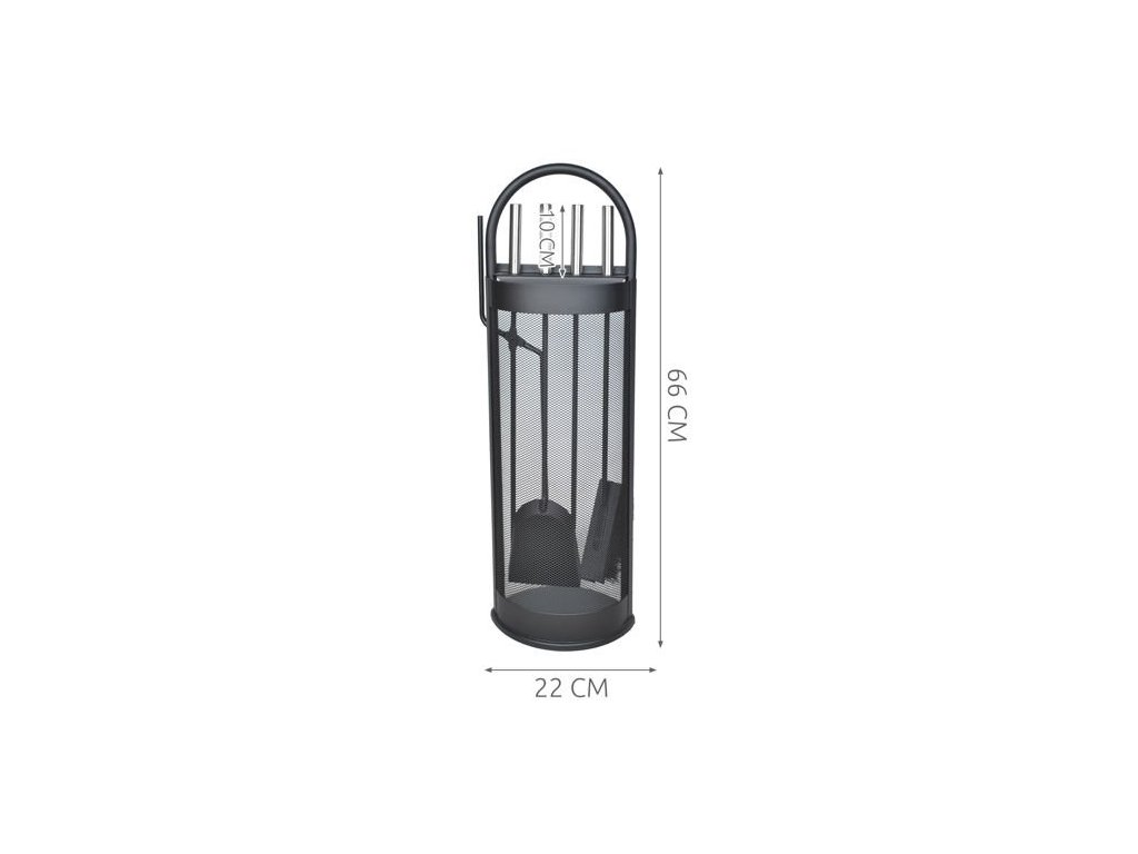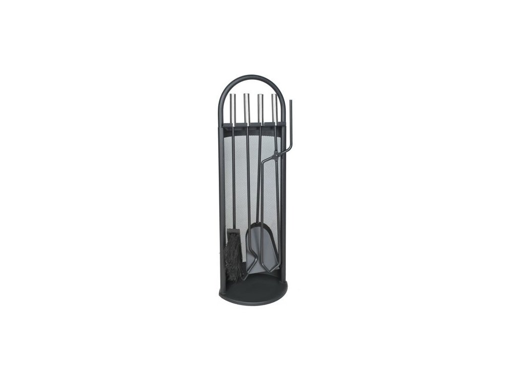 5-dílná sada krbového náčiní s moderním designem. Odolný, vyrobený z oceli a snadno se používá. Sada se snadno udržuje v čistotě díky stojánku vybavenému stojánkem, který udrží nečistoty a popel od nářadí a váš domov tak zůstane čistý. Kryt chrání příslušenství před jiskrami z krbu.