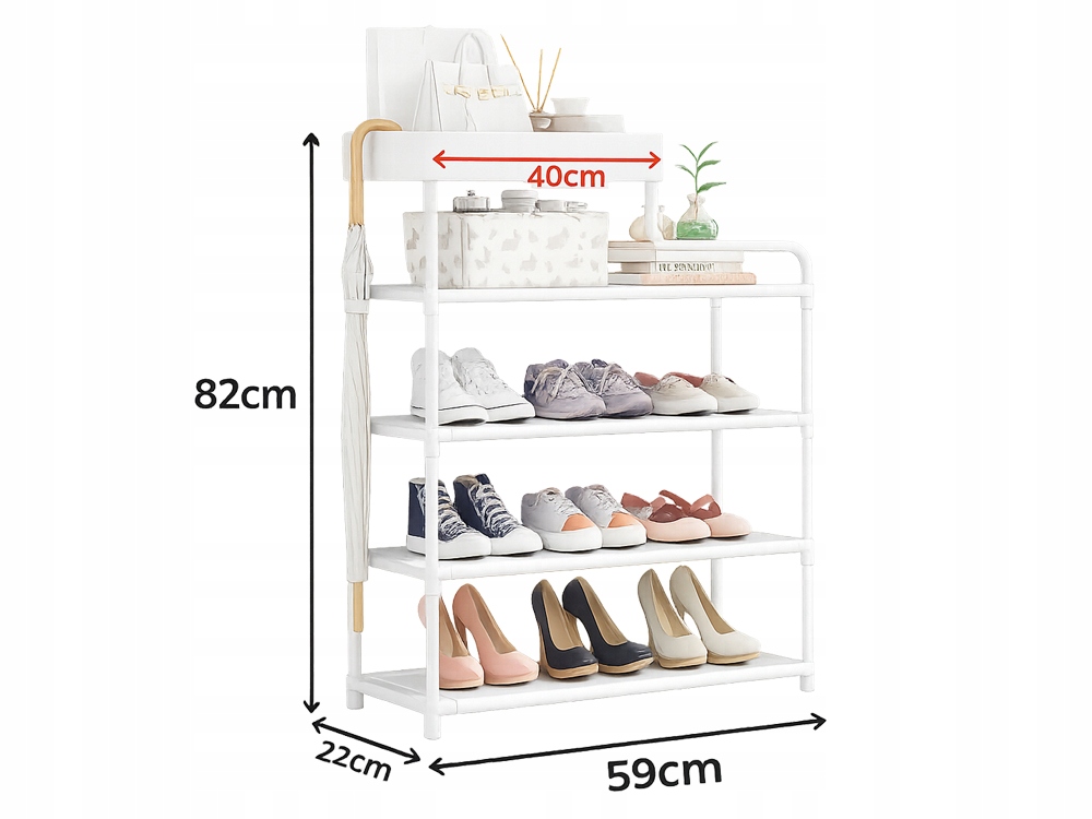 Pětipolohový regál na boty je skvělou volbou pro ty, kteří ocení pořádek a funkčnost v předsíni, šatně nebo ložnici. Díky pěti polohám snadno uložíte boty celé rodiny, kabelky, košíky nebo jiné doplňky. Horní police se skvěle hodí k uložení drobností nebo dekorací.