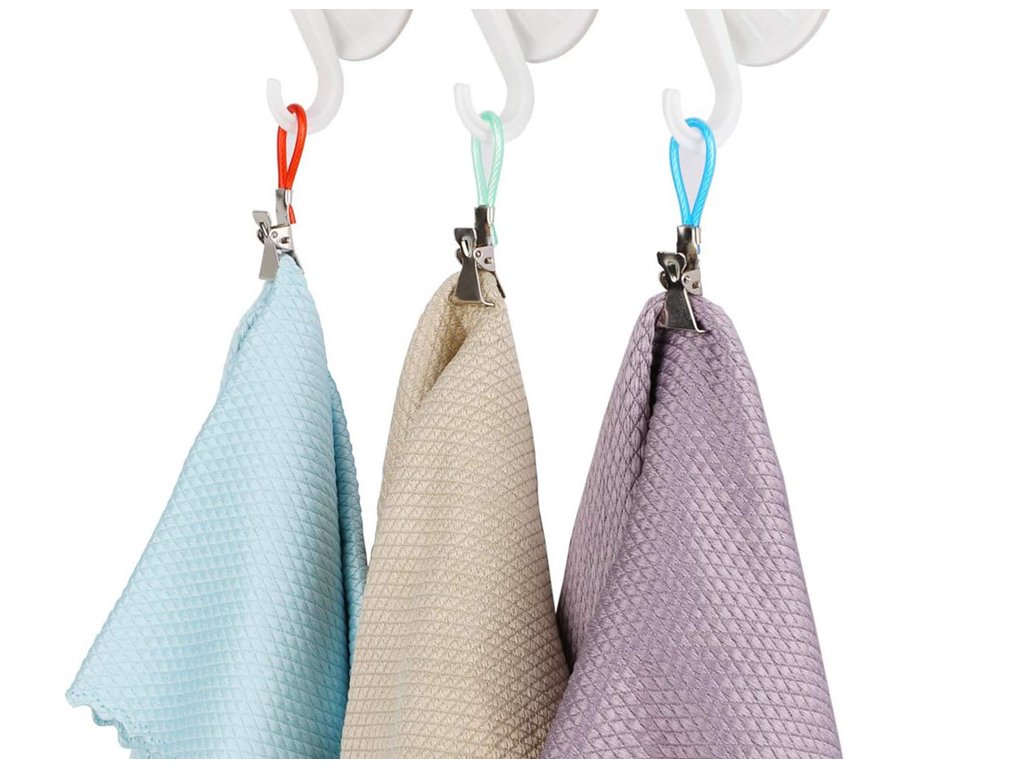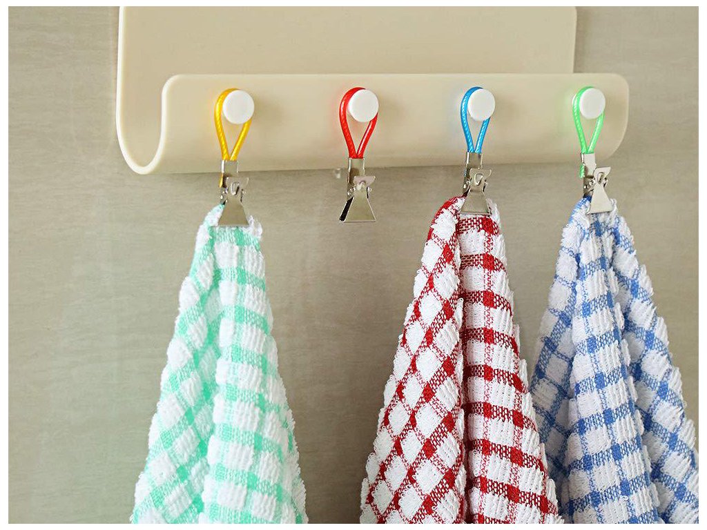 Hodí se na ručníky a utěrky , které nemají speciální očko na zavěšení. K dostání v pěti různých barvách.