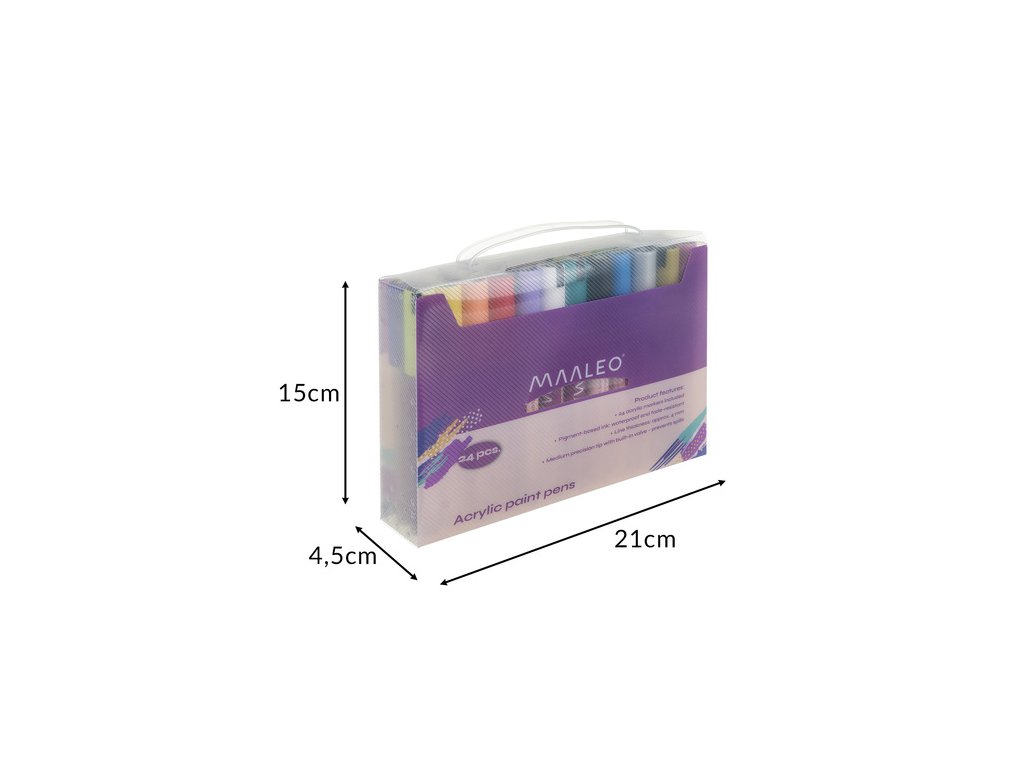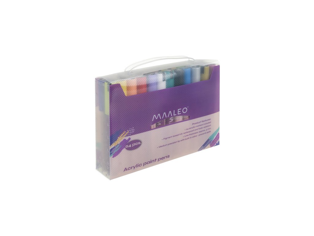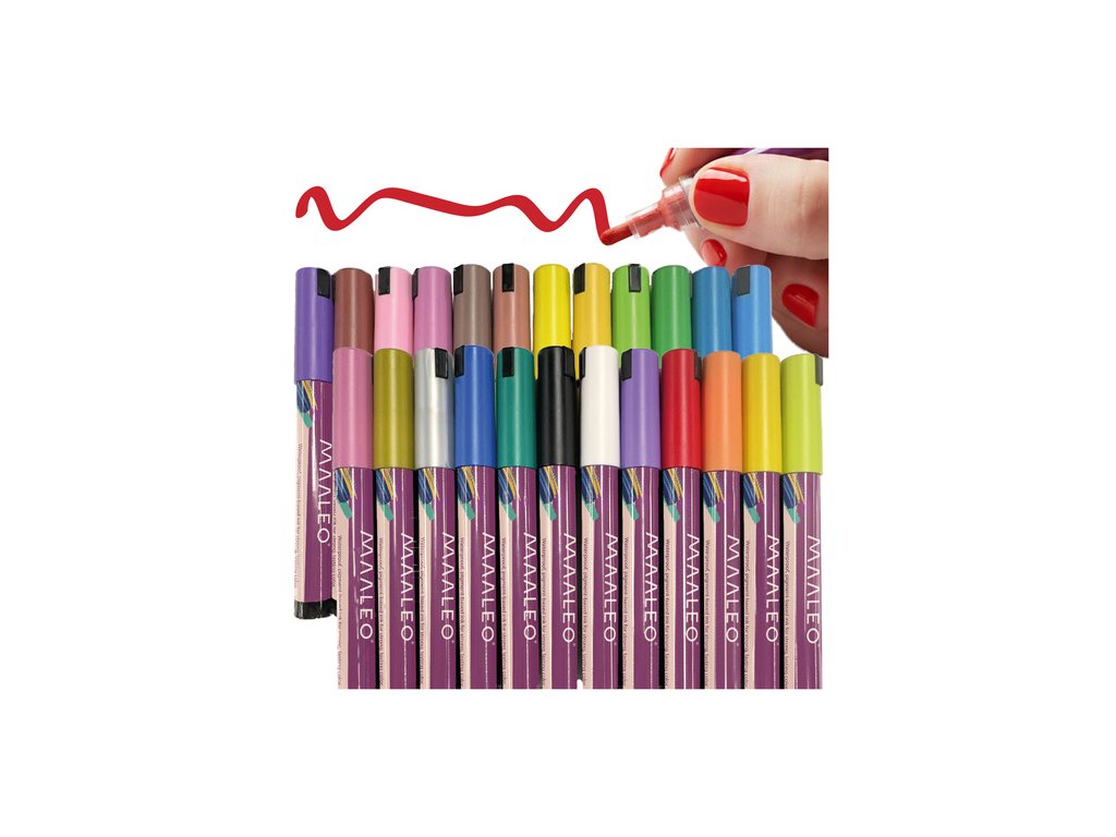Tato sada 24 akrylových fixů Maaleo je perfektní volbou pro každého – od začínajících umělců až po nadšence do kutilství a dekorování. Díky dlouhotrvajícímu inkoustu poskytují fixy intenzivní, voděodolné barvy bez rozmazávání nebo blednutí. Jsou vhodné pro papír, sklo, dřevo, látku, kámen a porcelán a vytvářejí efekt podobný malbě s pohodlím fixu. Rychleschnoucí, přesné a snadno použitelné – ideální pro ruční psaní, personalizaci dárků a kreativní projekty.