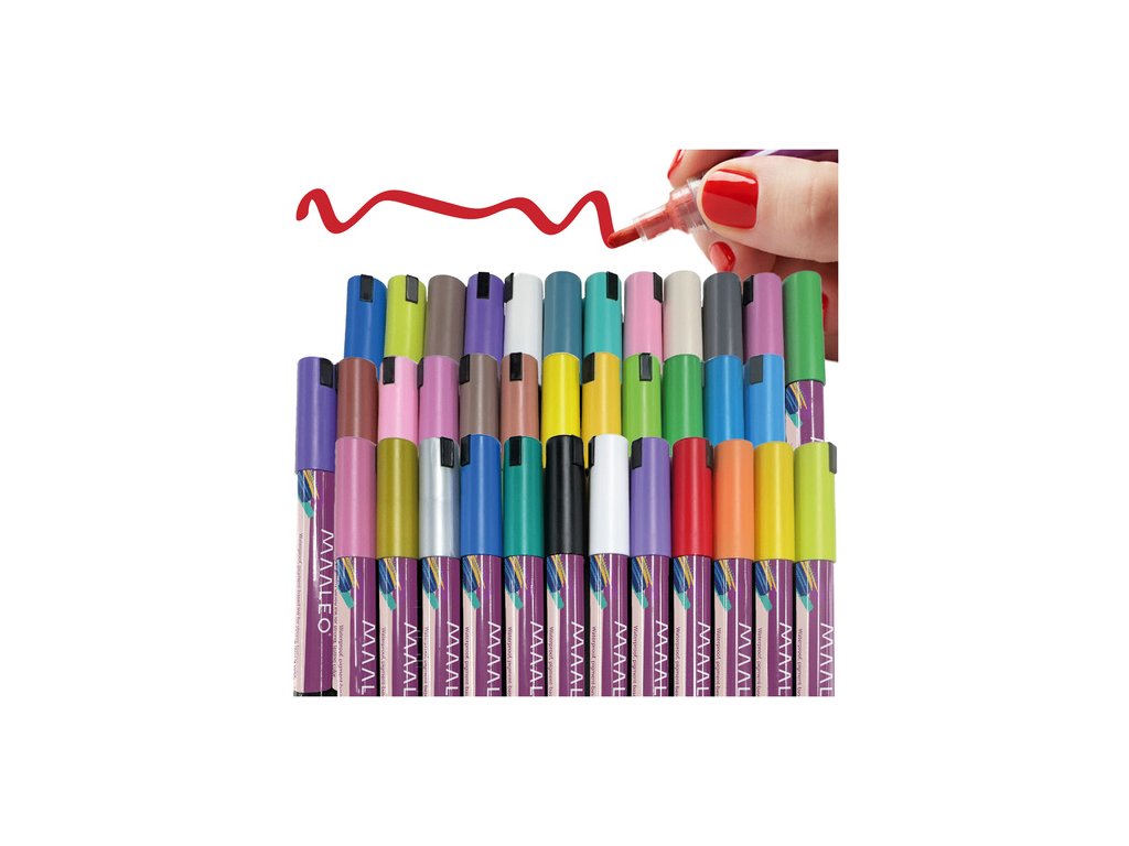 Zestaw 36 markerów akrylowych Maaleo to idealny wybór dla każdego – od początkujących artystów po miłośników DIY i dekoracji. Dzięki tuszowi o wysokiej trwałości, markery zapewniają intensywne, wodoodporne kolory bez smug i blaknięcia. Nadają się do papieru, szkła, drewna, tkanin, kamienia i porcelany, zapewniając efekt farby przy wygodzie pisaka. Szybkoschnące, precyzyjne i łatwe w użyciu – doskonałe do hand letteringu, personalizacji prezentów i kreatywnych projektów.