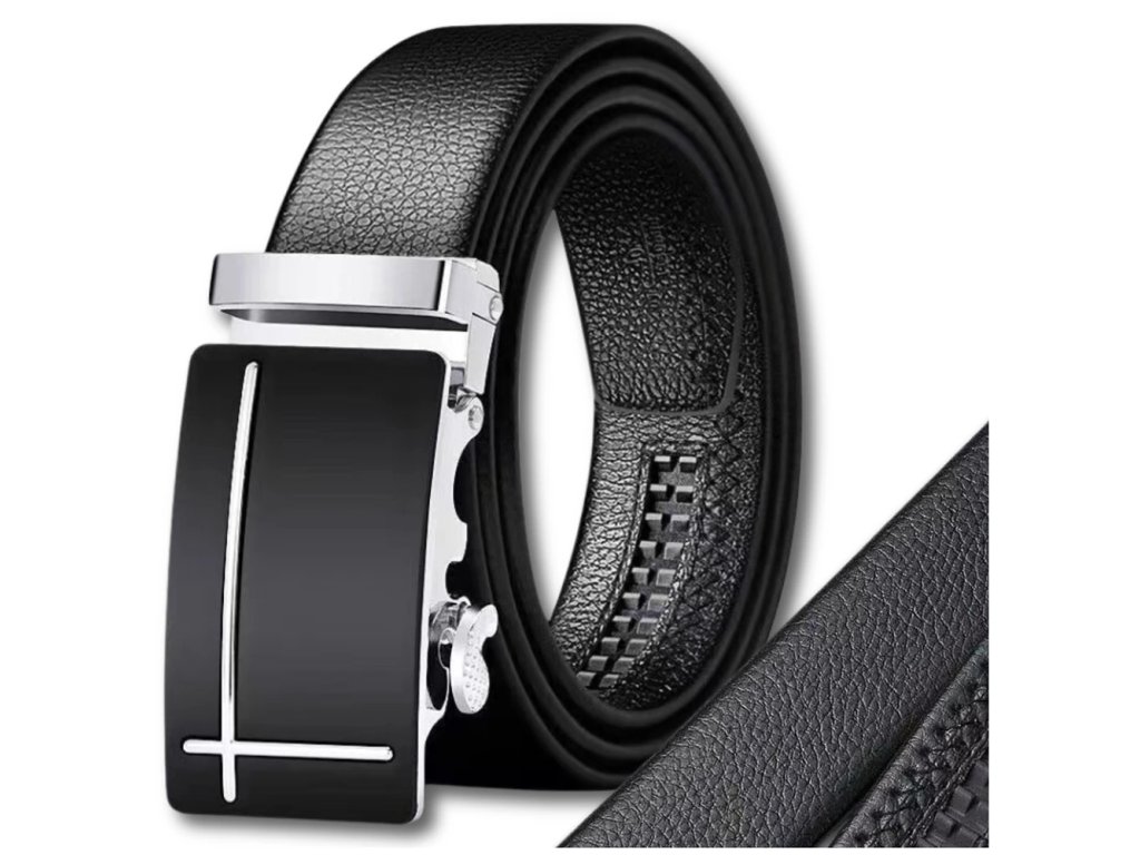 Tento elegantní černý pánský opasek s automatickou sponou je vyroben z ekologické kůže a je skvělým doplňkem pro každodenní nošení i formální příležitosti. Díky snadnému nastavení délky a možnosti zkrácení podle potřeby se perfektně přizpůsobí vaší postavě. Opasek kombinuje vysokou kvalitu zpracování s moderním designem, což z něj činí ideální volbu pro jakýkoli styl oblečení. Je pevný a odolný, což zajišťuje jeho dlouhou životnost.