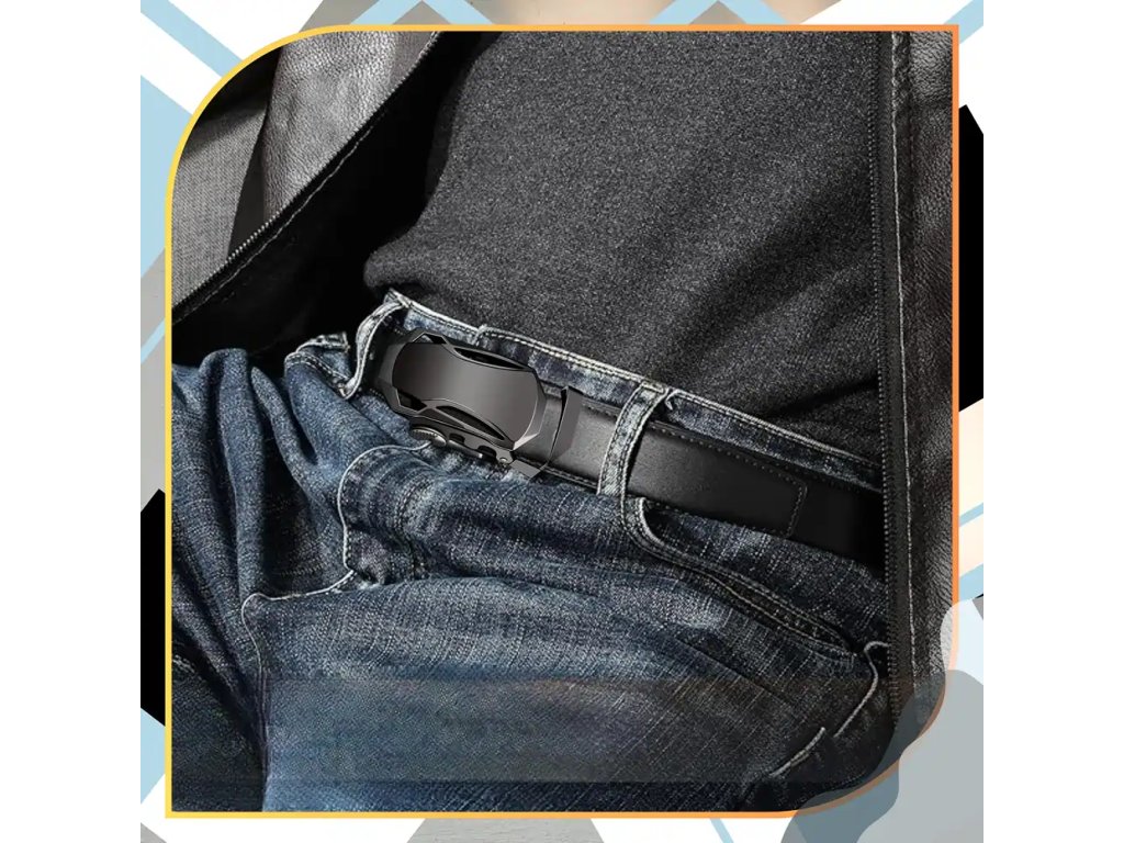 Tento pánský černý automatický kožený pásek ke kalhotám je vyroben z ekologické kůže a je doplněn o černou kovovou sponu. Spona má klip, který chrání před náhodným rozepnutím, což zajišťuje bezpečnost a pohodlí při nošení. Pásek je navržen tak, aby bylo možné snadno a rychle nastavit jeho délku podle vašich potřeb.