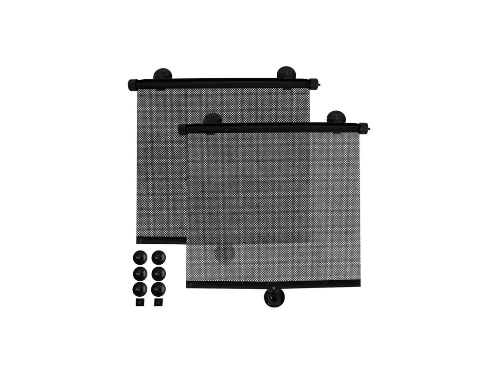 Rolety jsou vyrobeny z pevného plastu s jemnými oky. Dokonale chrání osoby uvnitř vozu proti nadměrnému slunečnímu záření a snižují zahřívání interiéru vozu. Velmi jednoduchá montáž na okno auta pomocí tří přísavek a háčků. Jsou vhodné pro všechny vozy na trhu.