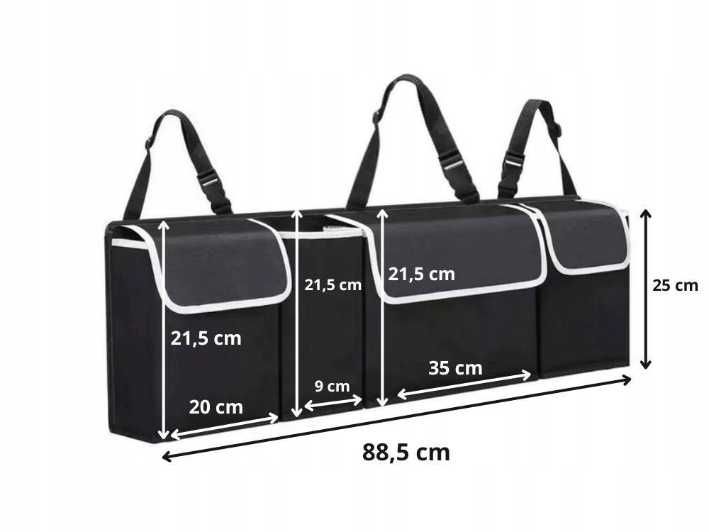 Organizér je vybaven nastavitelnými popruhy s přezkami , které umožňují jeho pevné připevnění k opěradlu zadní lavice nebo jiným prvkům v zavazadlovém prostoru. Montáž je rychlá a nevyžaduje použití nářadí.