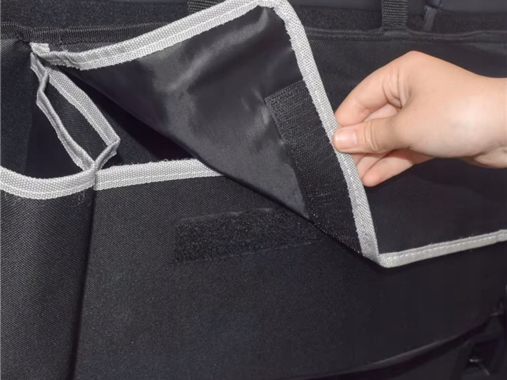 Když organizér není potřeba, lze jej snadno složit a uložit, aniž by zabíral mnoho místa. Jedná se o praktické řešení jak pro každodenní používání automobilu, tak pro delší cesty.
