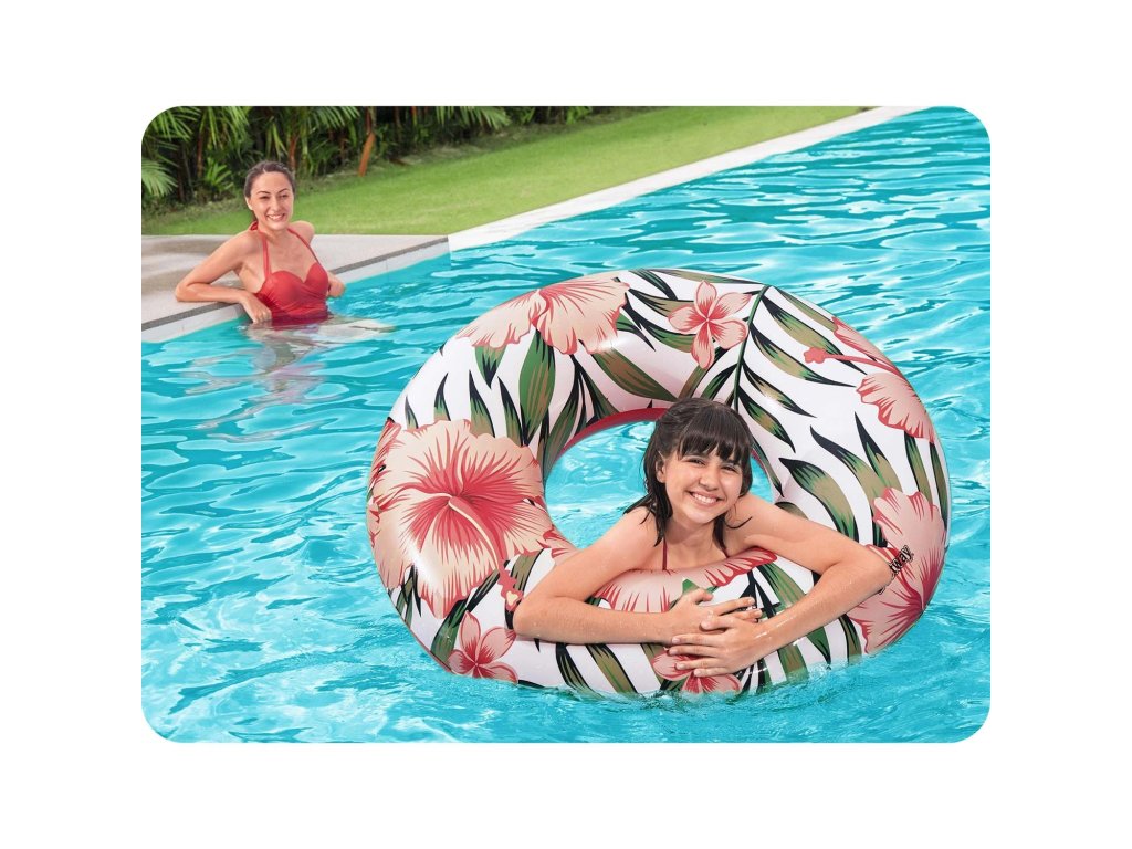 Plavecký kruh je vyroben z vysoce kvalitního a odolného PVC, odolného vůči slunečnímu záření i slané vodě. Ať už relaxujete na pláži, nebo se bavíte na bazéně, tento prsten s hmotností pouze 0,65 kg vám zajistí pohodlné a bezstarostné chvíle. Součástí balení je i opravná záplata, takže si můžete být jisti, že vám kruh dlouho vydrží. Připravte se na nezapomenutelné letní chvíle!