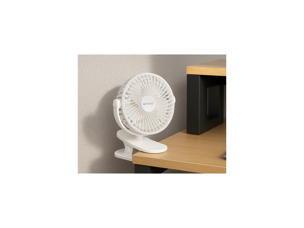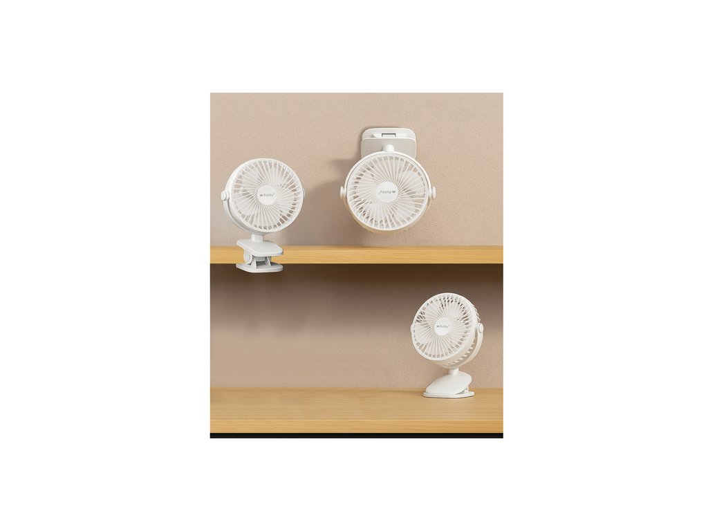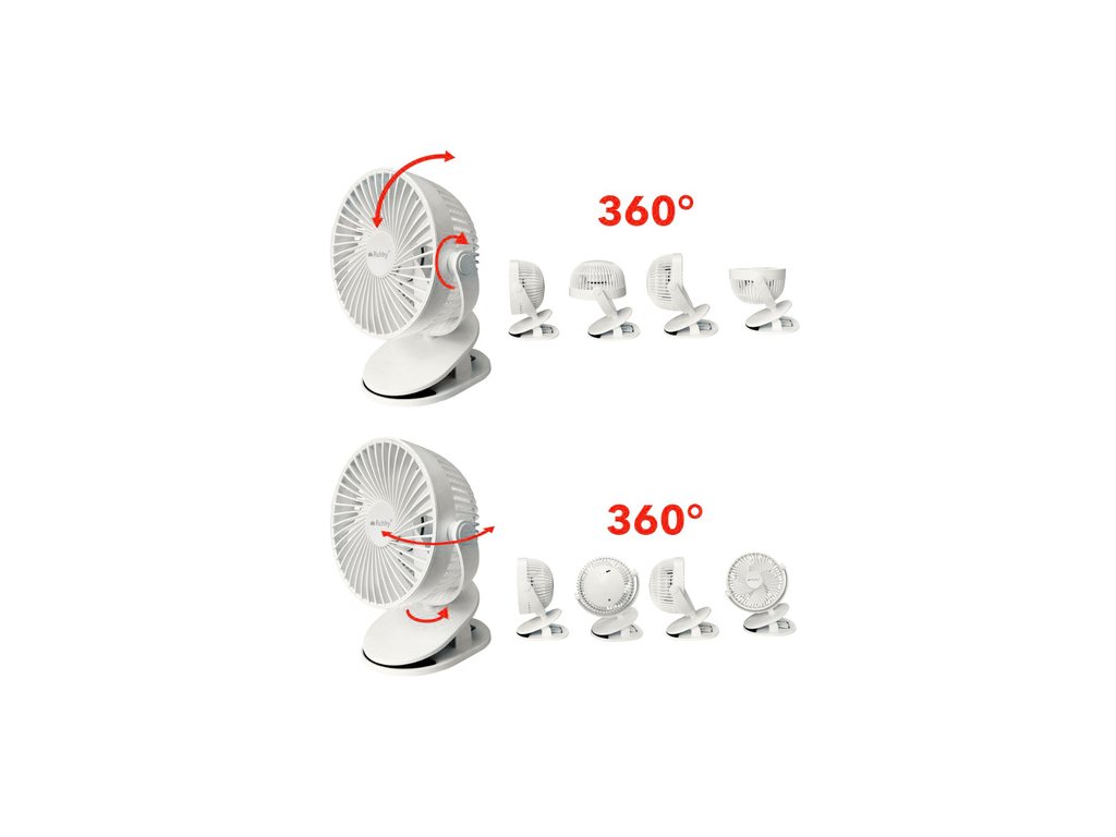 stabilita v každé poloze - Díky pevná rukojeť se silnou pružinou a protiskluzovou podložkou , ventilátor lze bezpečně připevnit pomocí klipu ke stolu, pracovní desce nebo poličce – bez obav z posunutí nebo pádu