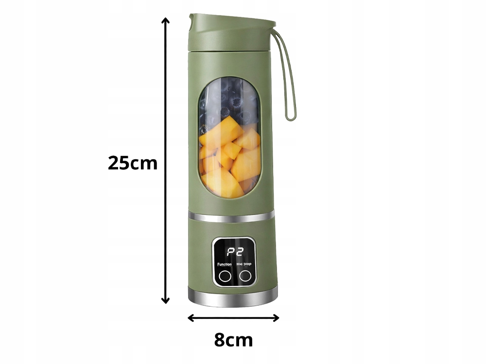Blender má vestavěnou baterii, kterou lze pohodlně nabít pomocí USB kabelu – z notebooku, powerbanky nebo síťové nabíječky. Po úplném nabití umožňuje přípravu několika porcí nápoje bez nutnosti připojení k elektrické síti. Bezdrátová konstrukce je ideální pro práci, školu, posilovnu nebo na cestách.