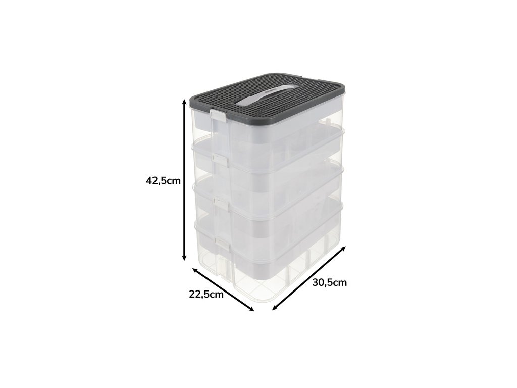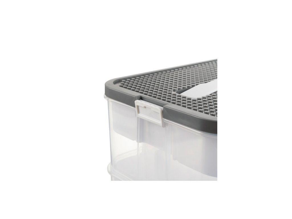 podlahy se během přepravy neoddělí – každá úroveň organizéru má silné západky, které drží vše na svém místě, I při intenzivním používání si 22litrový stavební box zachovává plnou stabilitu – bez nekontrolovaného rozpadu