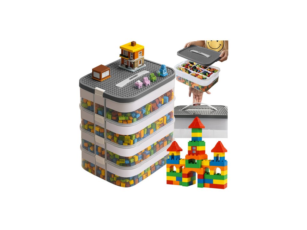 modulární design – díky třípatrové modulární konstrukci a přihrádkám a vložkám s přihrádkami v každé úrovni Můžete jej přizpůsobit potřebám vašeho dítěte: přihrádky na kostky, větší prvky nebo celé sady , organizér na kostky a další hračky poskytuje plnou flexibilitu při ukládání