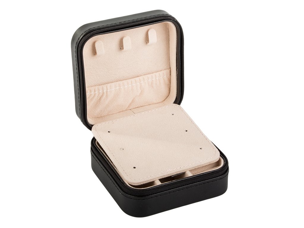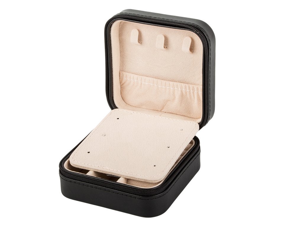 Kazeta je vyrobena z vysoce kvalitních materiálů. Je polstrovaná velmi jemným sametovým materiálem zabraňujícím poškrábání šperků. Celá se uzavírá elegantním zipem.