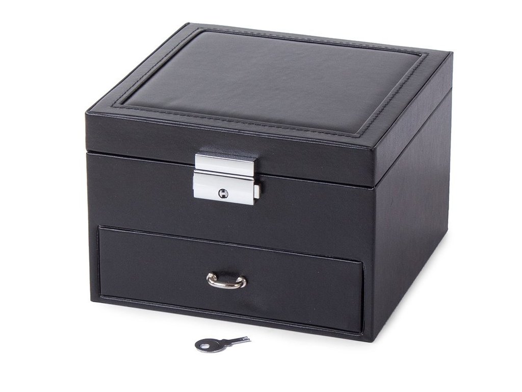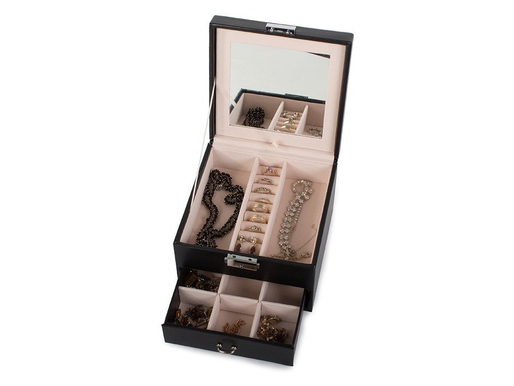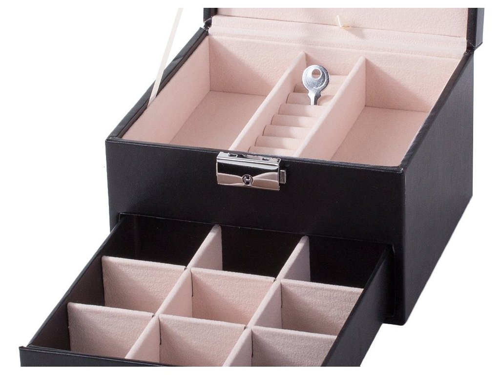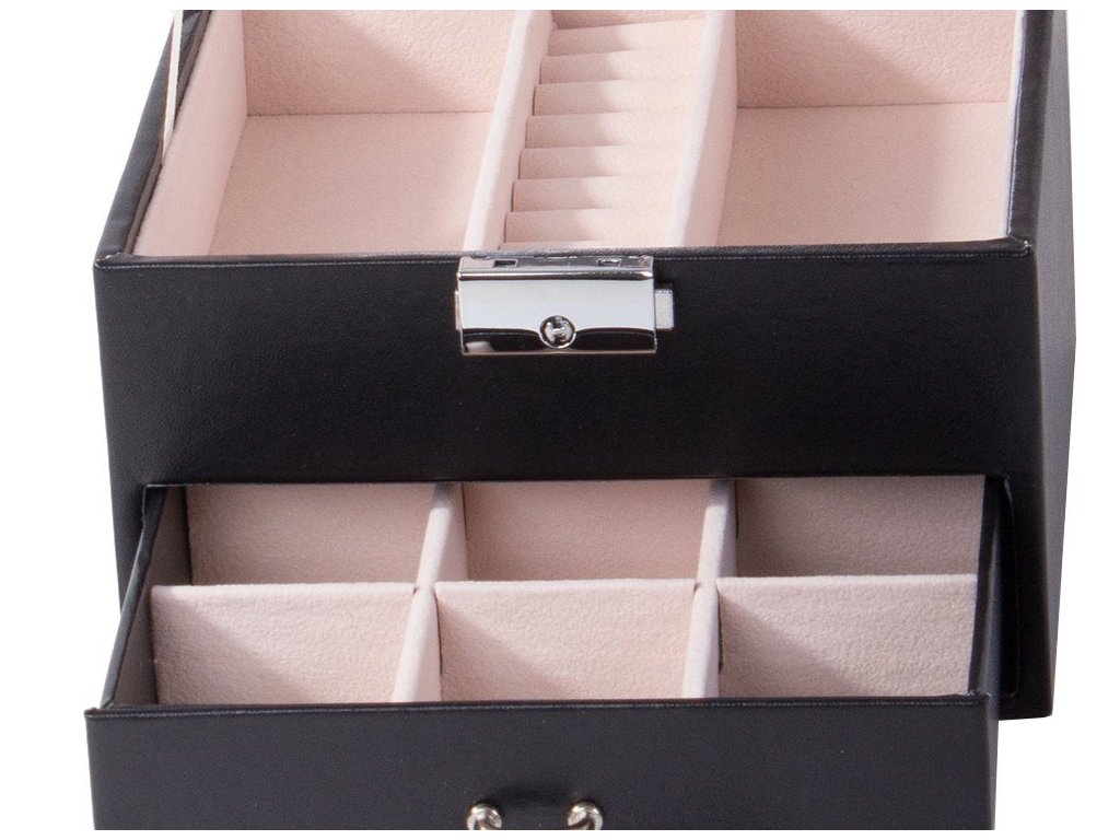Velmi prostorná schránka, která vám umožní uspořádat všechny druhy šperků. Organizér je vybaven různými typy a velikostmi přihrádek , které úspěšně pojmou velké množství prstenů, řetízků, náušnic, náramků atd.