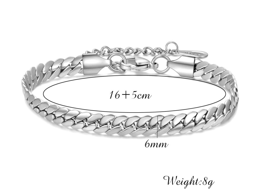 Pridějte do svého šperkovnice nádech elegance s tímto nádherným náramkem z chirurgické oceli 316L. Tento dokonalý módní doplněk vyniká svou luxusní stříbrnou barvou a kvalitním zpracováním. Ať už se chystáte na důležitou schůzku, večírek nebo jen chcete osvěžit svůj každodenní outfit, tento náramek je skvělou volbou. Jeho klasický design o šířce 6 mm a délce 16 cm se hodí jak k elegantním šatům, tak i k casualnému stylu.