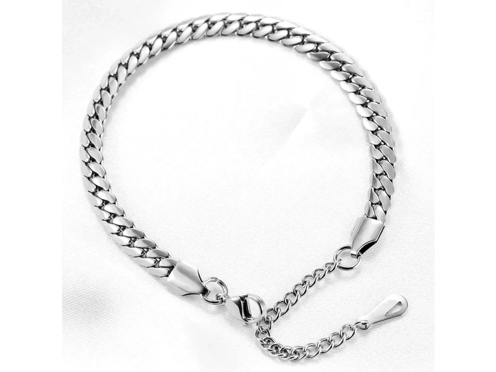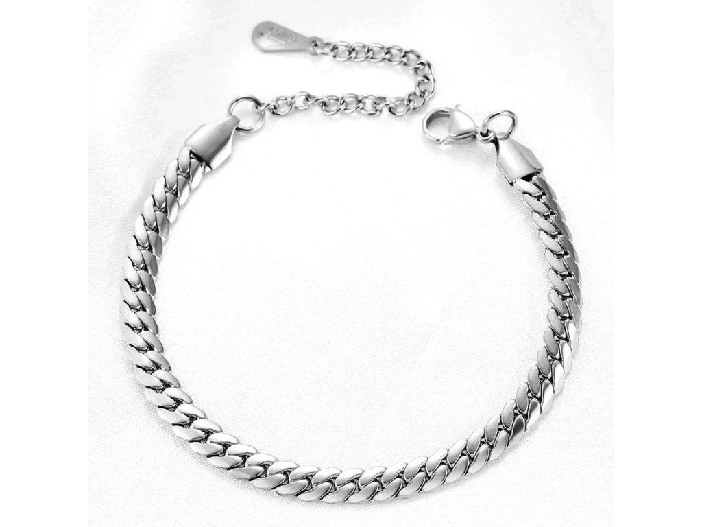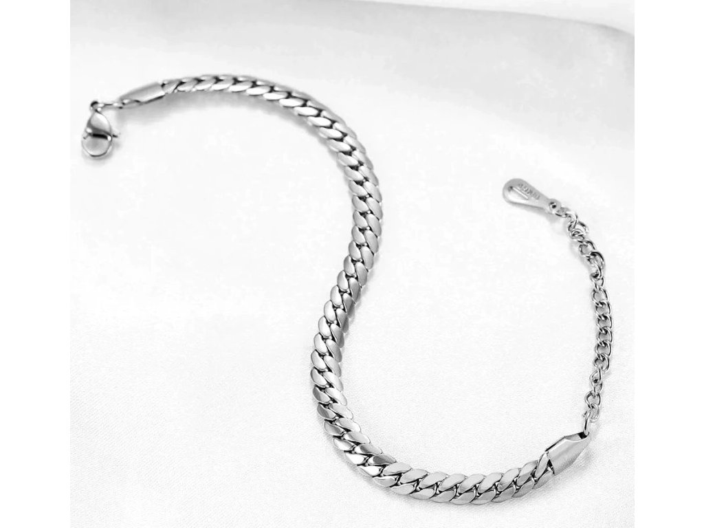Tento stříbrný řetízek je vyroben z antialergické chirurgické oceli, která je nejen odolná, ale také stylová. Díky zapínání na pevnou karabinu se můžete spolehnout, že náramek zůstane tam, kde má, a jeho atraktivní vzhled zůstane zachován i po dlouhodobém nošení. Rozhodněte se pro originální kousek, který kombinuje krásu s praktičností a bude vás provázet každým dnem.