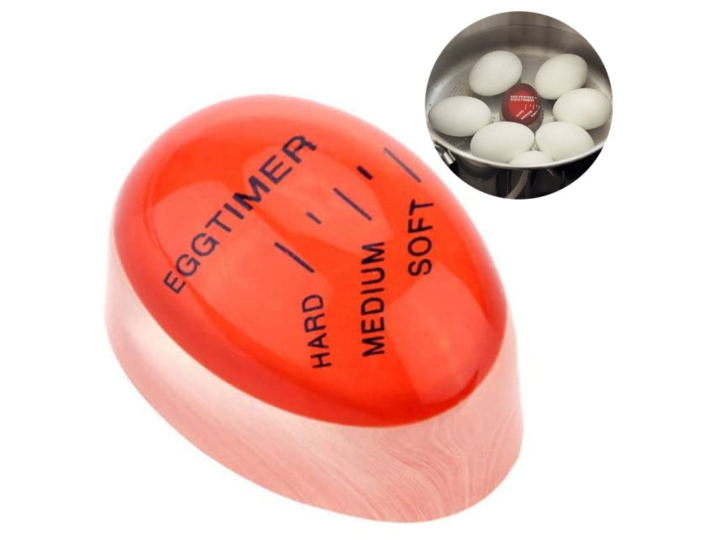 Časovačvajec je senzační zařízení pro vaření vajec na měkko, středně tvrdých nebo tvrdých vajec. Časovač jednoduše umístěte do hrnce s vejci a sledujte, jak se během vaření mění jejich barva.