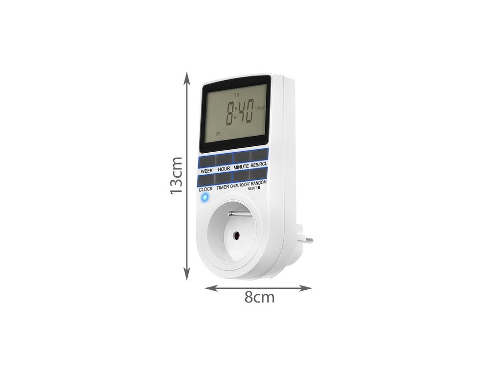 Časovač je zařízení, které se bude hodit v každé domácnosti, kanceláři nebo obchodě. Díky němu můžeme ovládat dny, hodiny a dokonce i minuty provozu zařízení k němu připojeného. Má 8 popsané + tlačítka RESET a přehledný displej, kde vidíme aktuální čas, den a program.