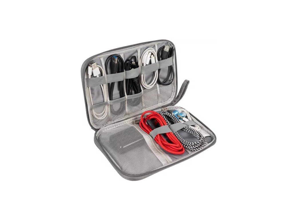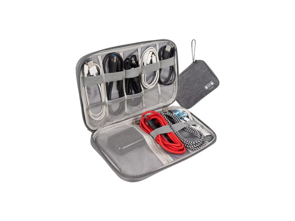 Organizér kabelů je praktické a estetické řešení určené k uspořádání různých typů elektrických kabelů, nabíječek a drobného elektronického zařízení na jednom místě. Jde o oblíbenou vychytávku mezi lidmi, kteří se snaží udržovat ve svém okolí pořádek, zejména v práci, v kanceláři nebo doma. Kabelový cestovní organizér má kompaktní velikost. Umožňuje snadné skladování a přepravu při cestování. Je to plochá taška, kterou lze snadno umístit do příručního zavazadla nebo batohu.