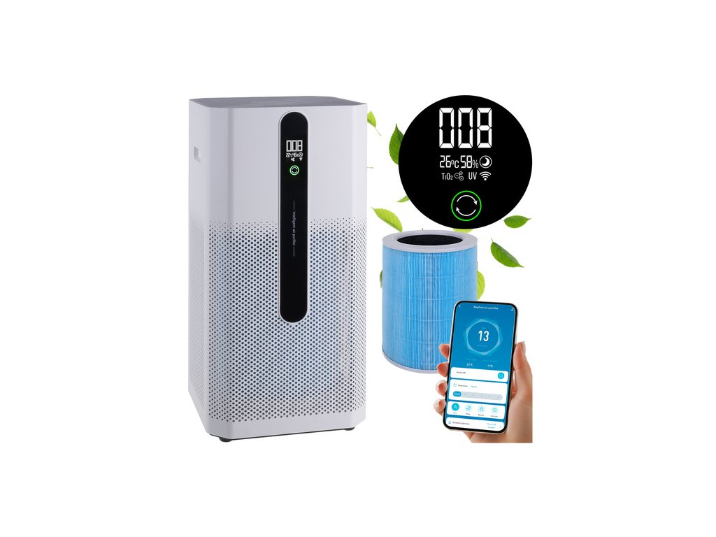 - Ovládání z telefonu a panelu s přehledným displejem PM2.5. Díky konektivitě Wi-Fi 2,4 GHz a aplikací Smart Life můžete v reálném čase ovládat kvalitu ovzduší, nastavovat plány a provozní režimy odkudkoli.