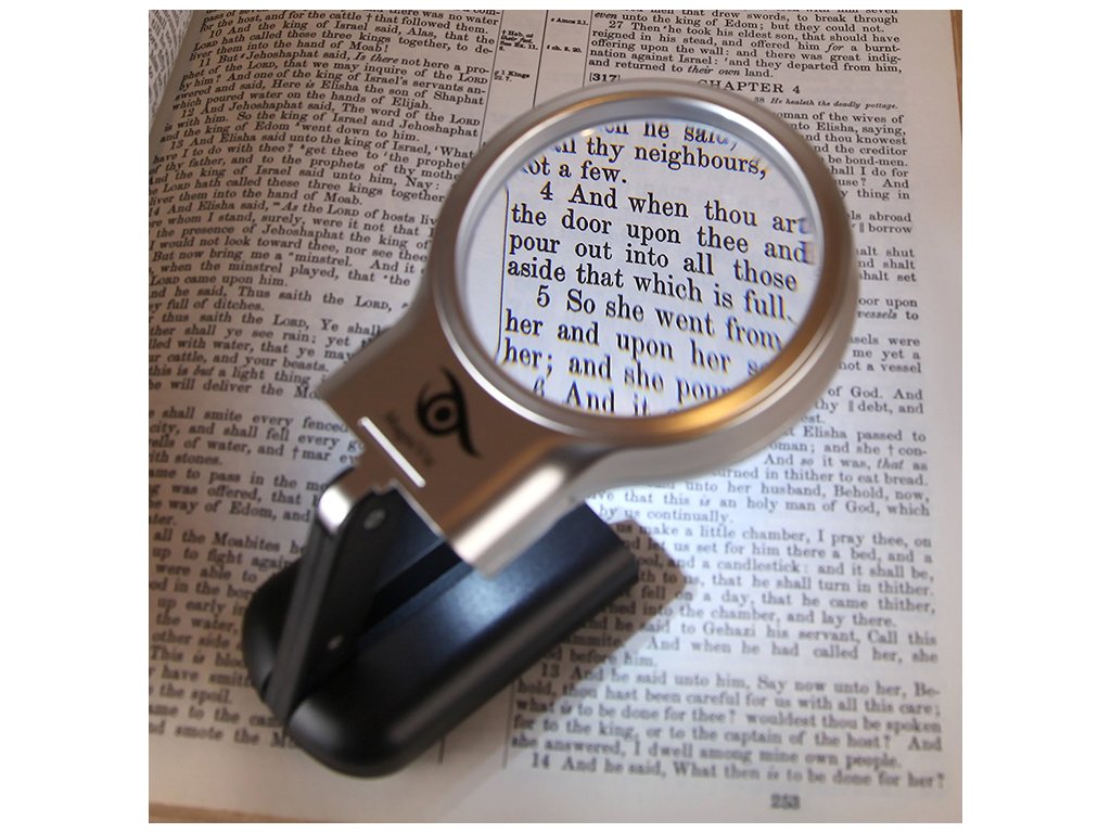 Díky velkému zvětšovacímu sklu a zabudovaným LED diodám je obraz velmi jasný a snadno čitelný.