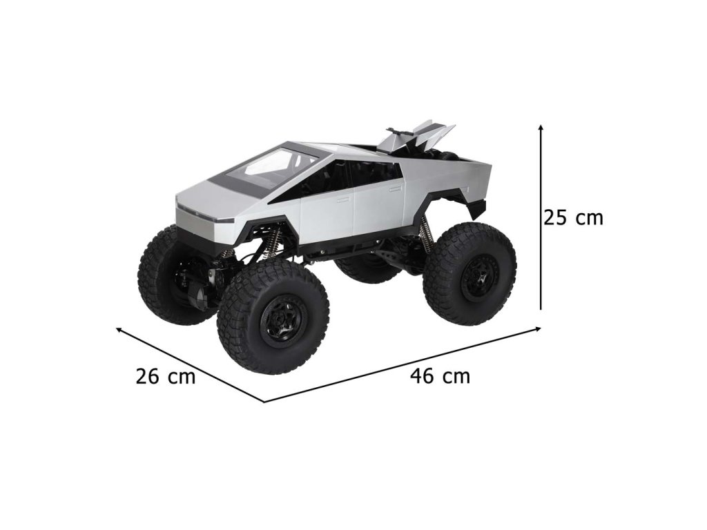 Seznamte se s RC modelem 1:8 Cyber Pickup Truck - výkonným dálkově ovládaným terénním modelem vytvořeným pro dynamickou jízdu a překonávání překážek. Díky pohonu všech kol (4WD), odpružení a velkým pneumatikám TPR o průměru 14 cm si vozidlo poradí i s náročným terénem a kopci se sklonem až 45°.