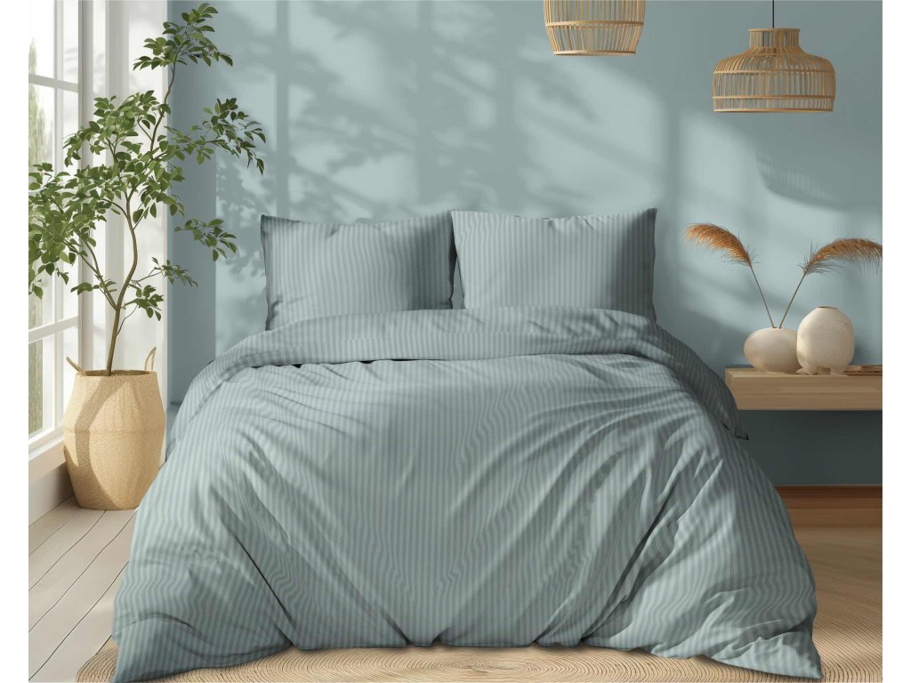 Vzor jemných 1 cm širokých pruhů dodává soupravě moderní vzhled, zatímco zapínání na zip usnadňuje údržbu a manipulaci.