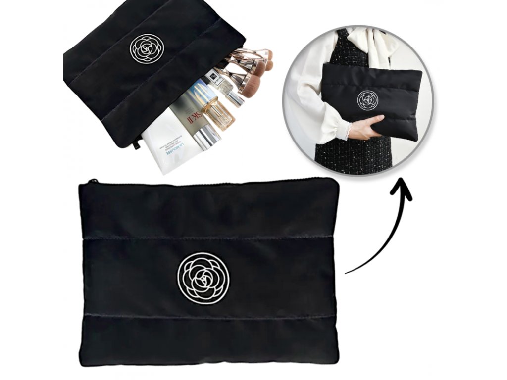 Už vás nebaví neustálé hledání make-upu a kosmetiky v přeplněné tašce? Představte si dokonalý pořádek a styl na cestách s naší luxusní prošívanou kosmetickou taštičkou. Tato taštička je navržena pro moderní ženu, která ocení praktičnost a elegantní design. Její voděodolný a kluzký materiál zajistí, že vaše cennosti zůstanou v bezpečí a suchu, ať už se vydáte kamkoliv. Zapomeňte na kompromisy mezi prostorem a elegancí. Tato velká dámská kosmetická taštička v černé barvě je neuvěřitelně prostorná a všestranná, ideální pro delší cesty nebo víkendové výlety. Se svými rozměry 22 x 31 cm a jednou hlavní přihrádkou na zip pojme vše, co potřebujete, od štětců po lahvičky. Její čistá hmotnost je pouhých 82 g (brutto 93 g), takže vám na cestách nepřidá zbytečnou váhu.