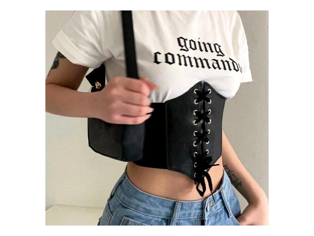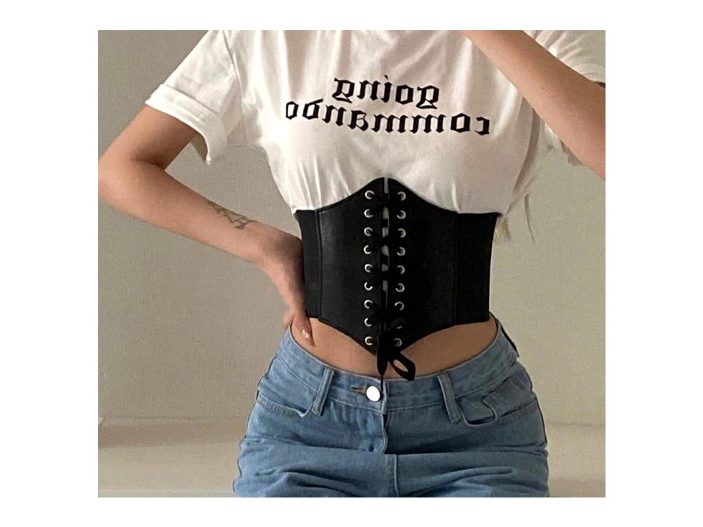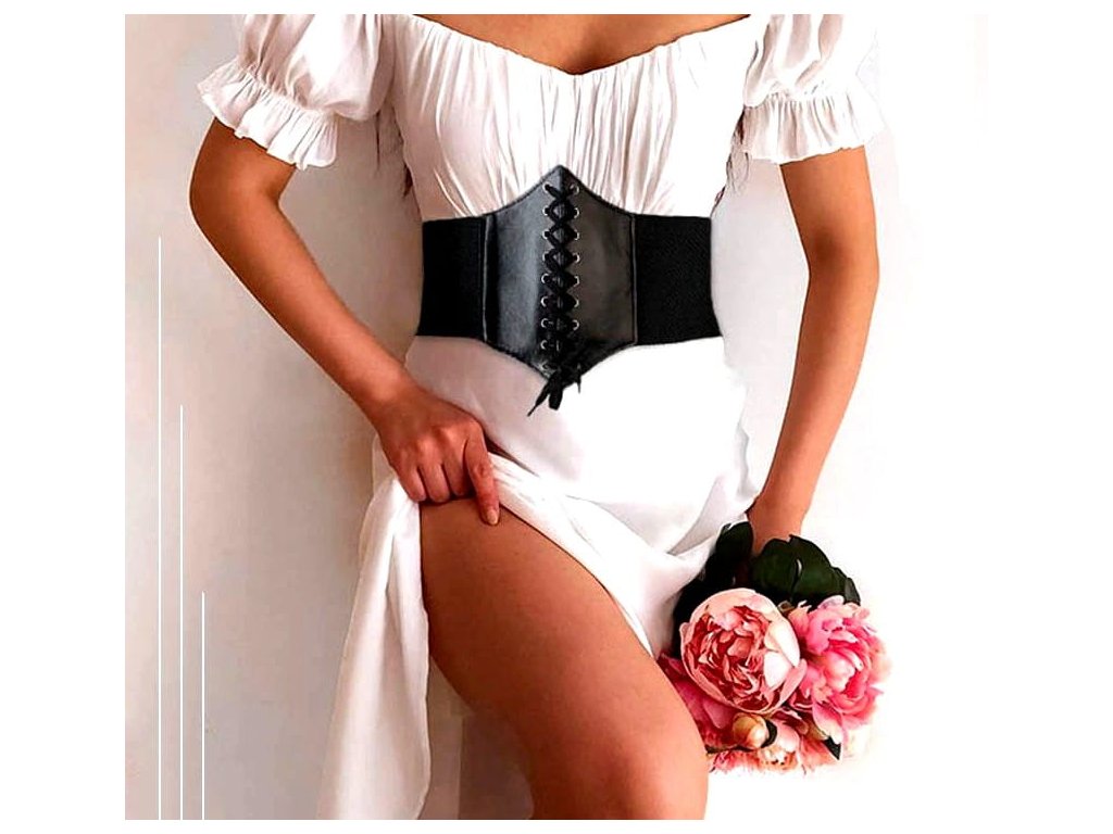 Tento široký korzetový pásek v černé barvě s gumovým šněrováním je skvělým doplňkem pro jakoukoli příležitost. Ať už ho nosíte s šaty, svetrem nebo tunikou, vždy dodá vašemu outfitu elegantní a sofistikovaný nádech.