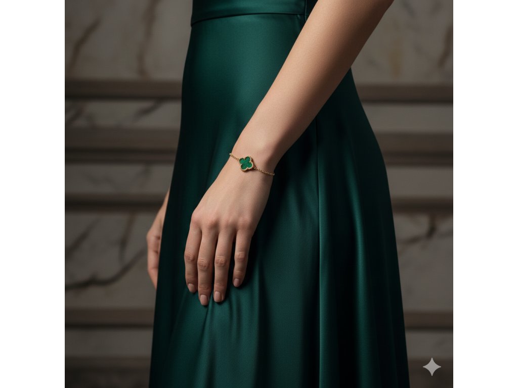 Představujeme vám šperk, který v sobě nese tradici i moderní eleganci. Tento náramek z kolekce Srdcem darované zdobí ikonický čtyřlístek, jehož lístky jsou tvořeny broušenými krystaly v hluboké smaragdově zelené barvě. Je to ideální doplněk pro ženu, která věří v sílu symbolů a miluje výrazné, ale přesto vkusné šperky.