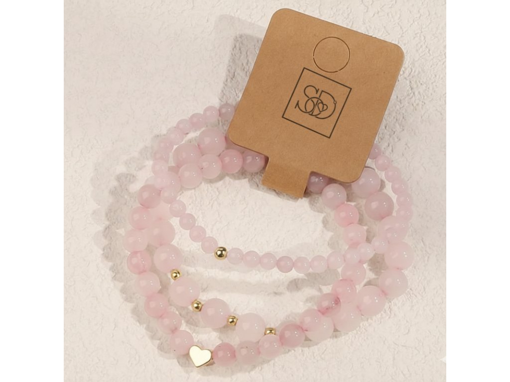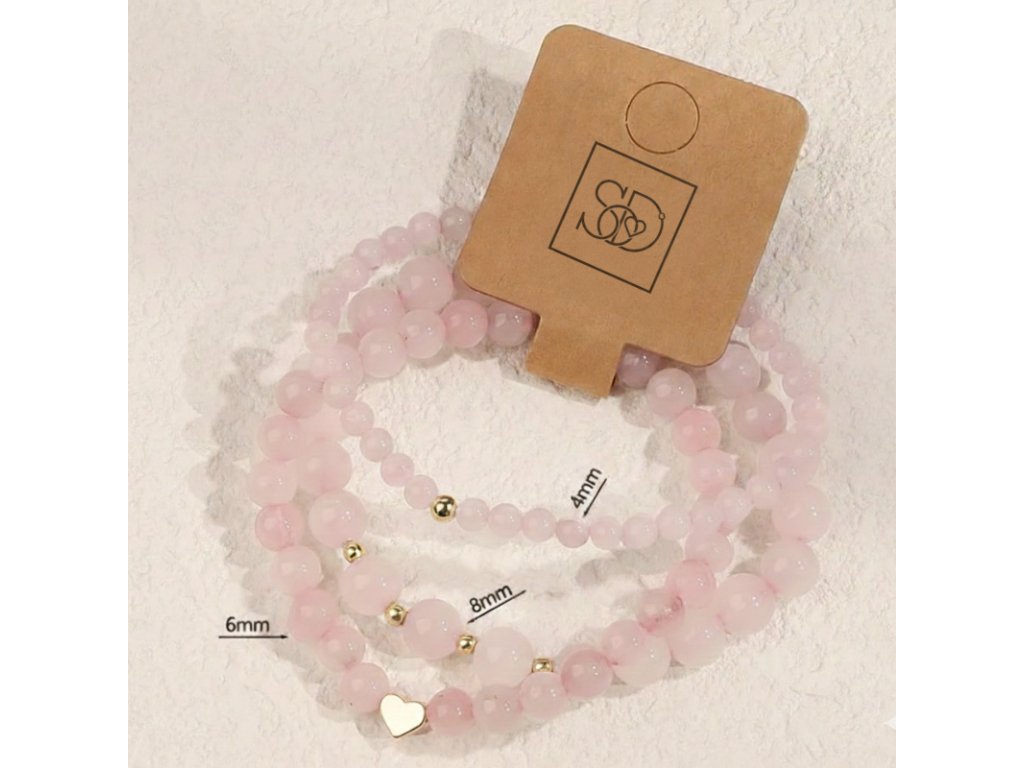 Jemný náramek z přírodního růženínu doplněný zlatými detaily a srdíčkem. Symbol lásky a vnitřního klidu od Srdcem darované, ideální pro každodenní nošení i jako osobní talisman.