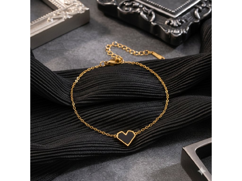 Hledáte šperk, který kombinuje jemnou ženskost s moderní odolností? Tento náramek z kolekce Srdcem darované je ztělesněním čistého designu. Ústředním prvkem je nádherně zpracované srdce s bílou výplní, které je lemováno jemným zlatým detailem, připomínajícím luxusní šperky s perletí.