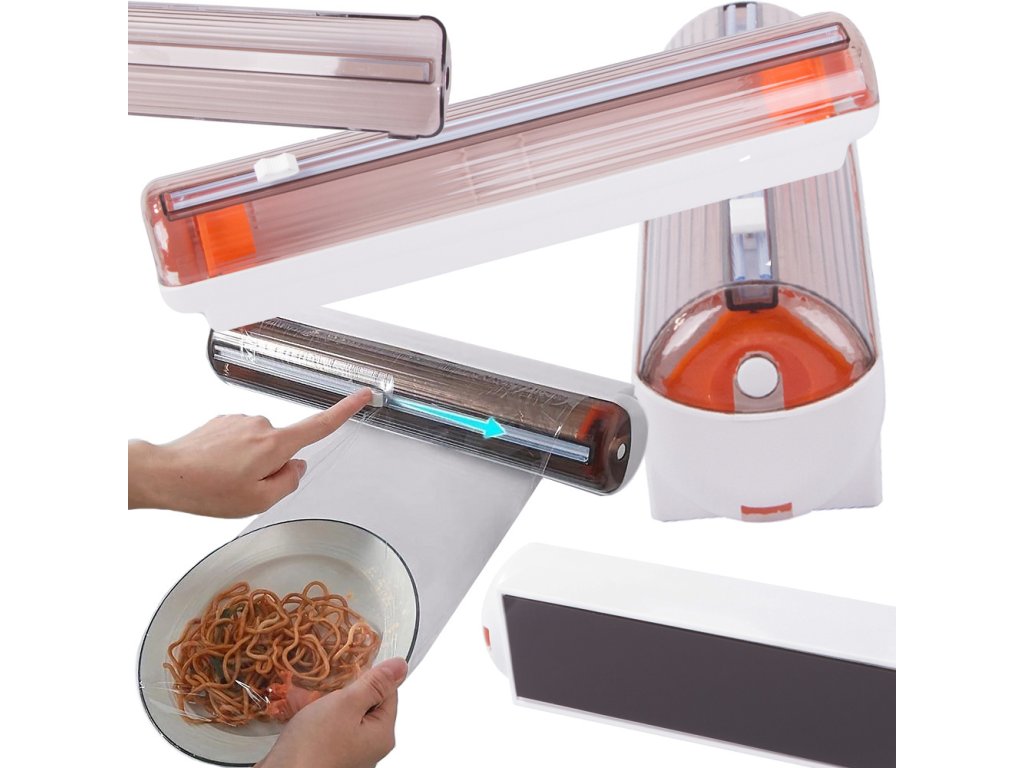 Řezačka má elegantní design, takže bude ozdobou vaší kuchyně, a má průhledný otvor pro kontrolu množství zbývající fólie, aniž byste museli otevírat dávkovač.