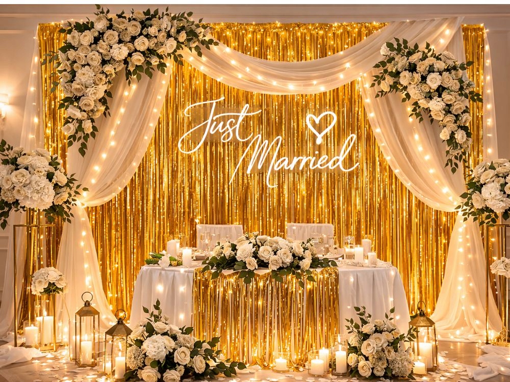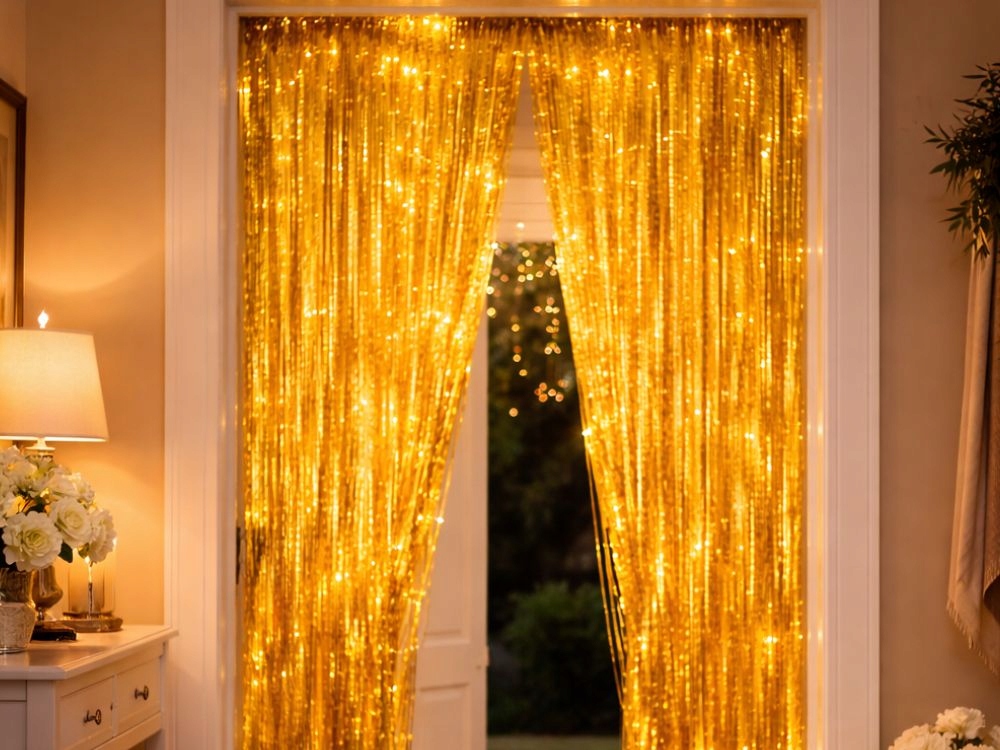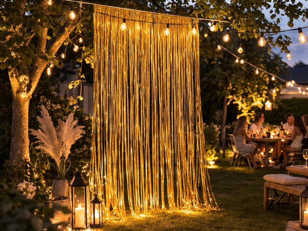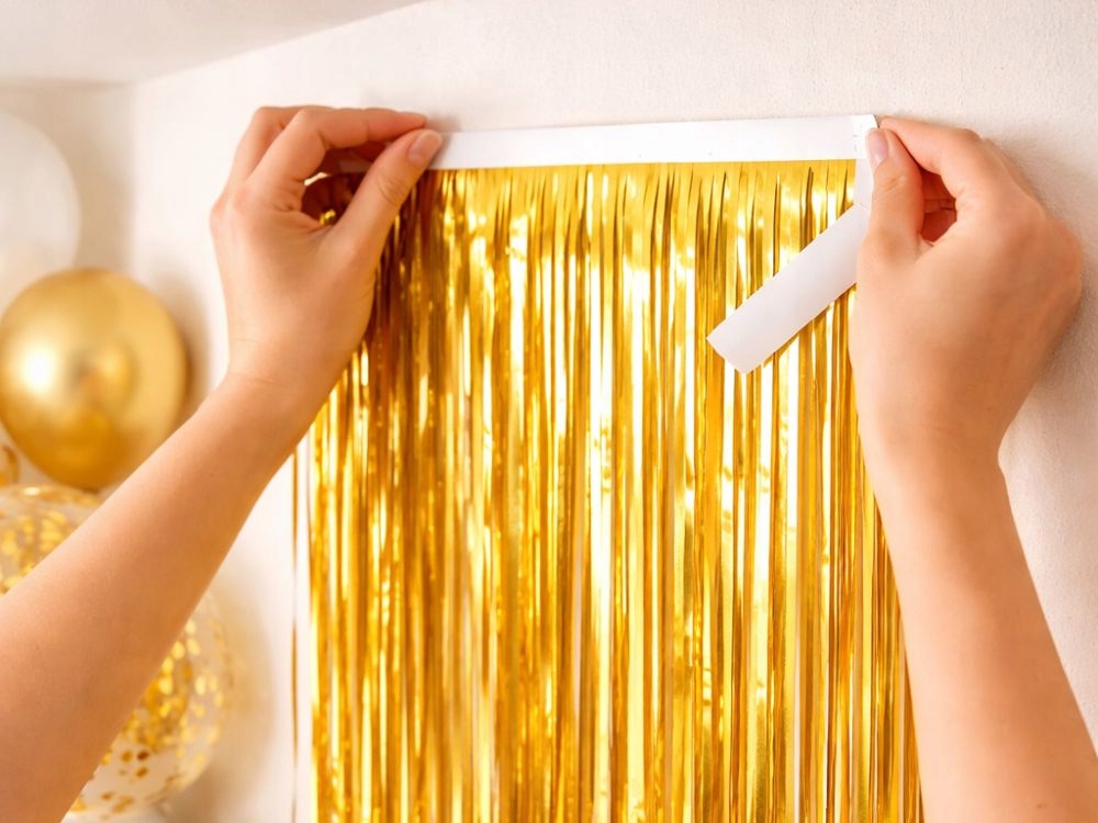 Záclona vytváří efektní, lesklou stěnu z tenkých fóliových proužků, která skvěle vypadá na fotografiích. Lze ji použít jako pozadí pro focení, dekoraci narozeninového stolu nebo jako ústřední bod dekorace během oslavy.