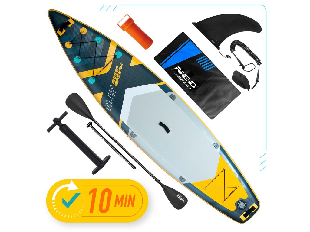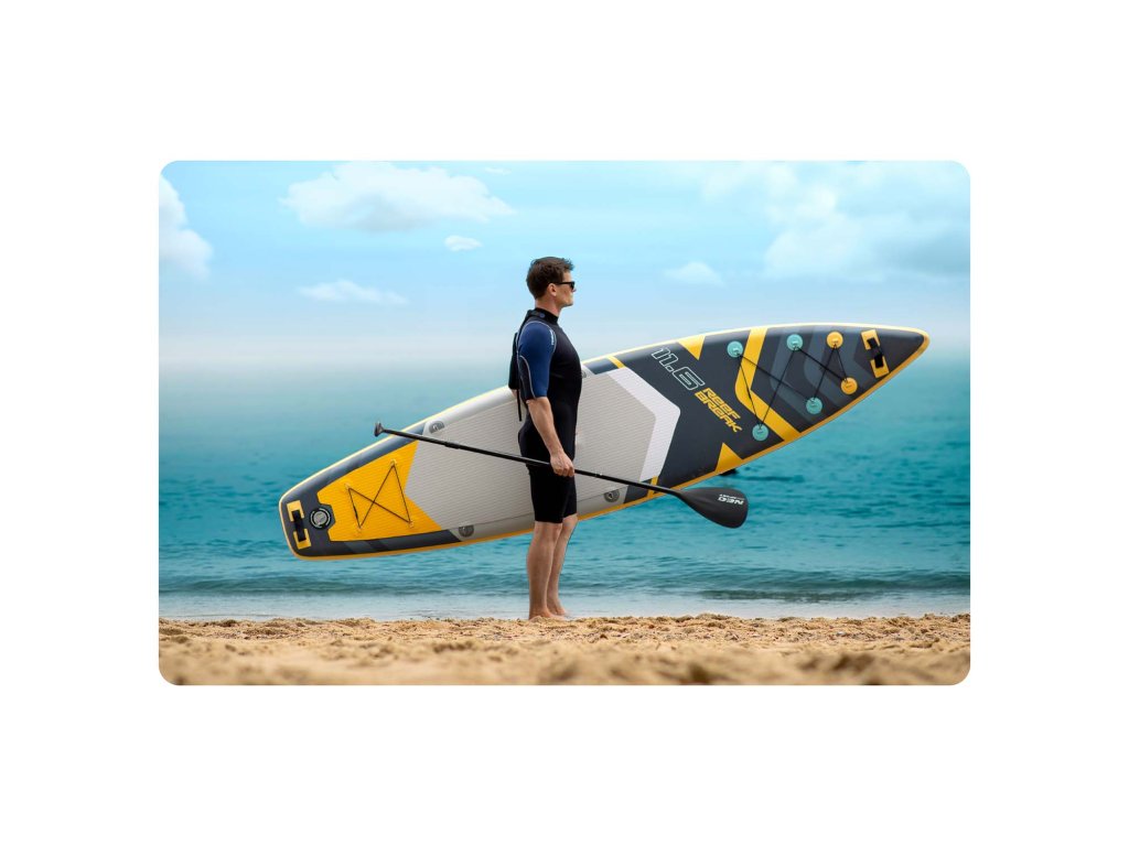 Toužíte po nezapomenutelných zážitcích a naprosté svobodě na vodě? Připravte se na letní dobrodružství, relaxaci u jezera nebo dynamickou jízdu na menších vlnách s nafukovacím SUP prknem Reefbreak 11.6 od Neo-Sport! Tento kompletní set je navržen tak, aby zaručil radost, stabilitu a bezpečnost každému, ať už s pádlováním teprve začínáte, nebo už máte zkušenosti. Užijte si dokonalou kombinaci funkčnosti a lehkosti, která vám umožní snadno přepravit váš nový prostor svobody kamkoliv.