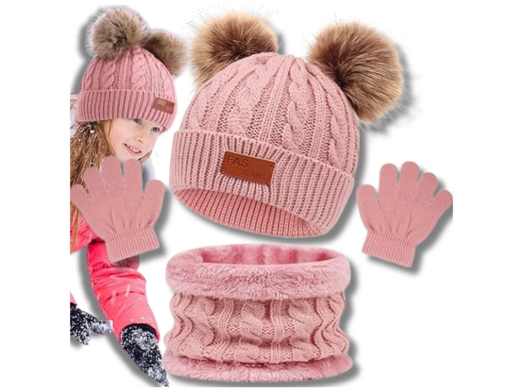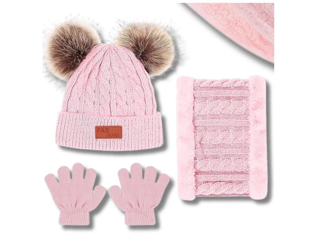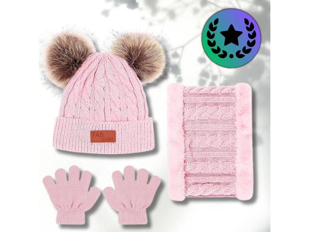 Tato dětská třídílná zateplená sada kominických rukavic je skvělým doplňkem do šatníku každé malé dívky. Sestává z čepice se dvěma bambulkami, komínu a rukavic, které jsou vyrobeny z měkkého a pružného akrylového vlákna. Tento materiál je známý svou hřejivostí a odolností proti chladu.