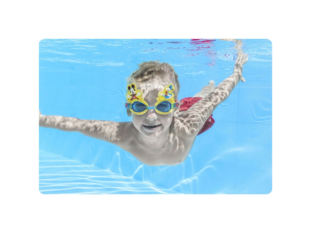 Okuláry na plavání Mickey Deluxe od značky BESTWAY 9102S jsou ideálním doplňkem pro vaše malé dobrodruhy, kteří milují objevování fascinujícího podvodního světa. Tyto barevné dětské brýle nejenže vypadají skvěle, ale nabízejí také maximální komfort díky svému jedinečnému designu. Vaše děti si je zamilují! Precizní zpracování a regulovatelný silikonový pásek zajišťují, že se okuláry dokonale přizpůsobí každé tváři, a tak se mohou naplno soustředit na radost z plavání.