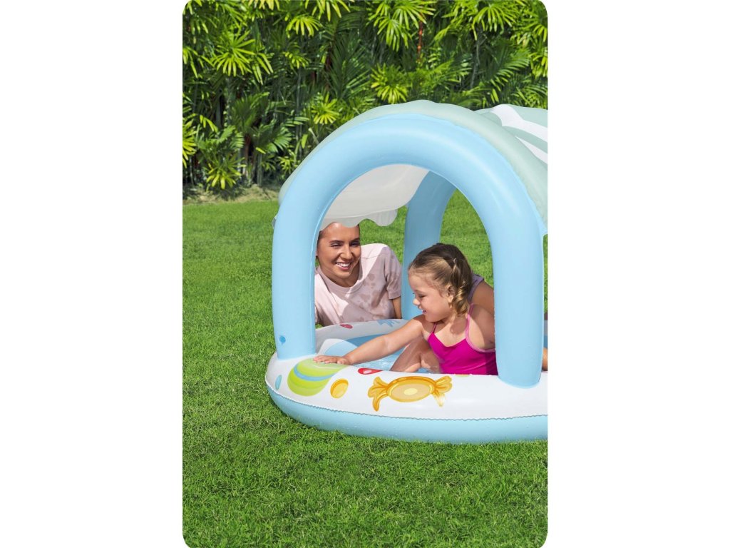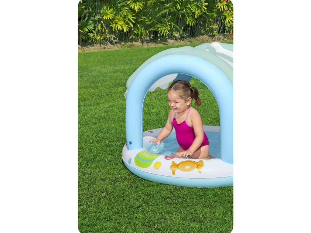 S bazénem Bestway 52638 ve tvaru 104 x 84 cm se vaše děti ponoří do světa vodních her, zatímco měkký střešní kryt je ochrání před přímým sluncem. Je vhodný pro děti již od dvou let, a proto je skvělou volbou pro rodiny s malými dětmi, které si chtějí užít letní dny naplno.
