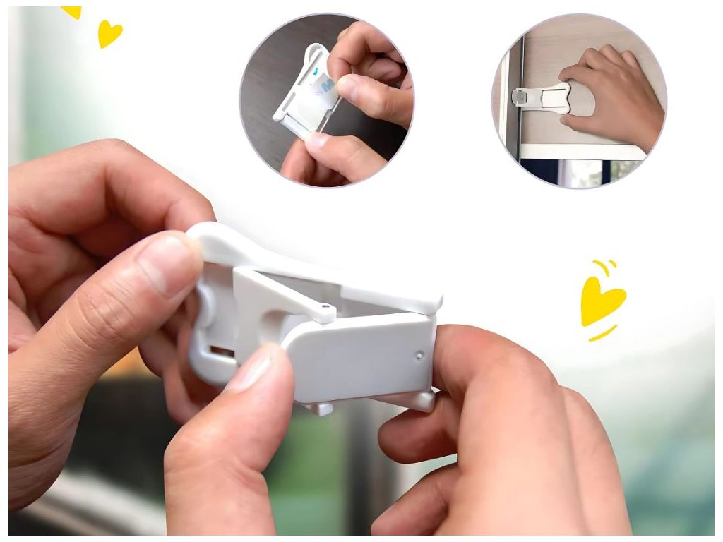 Sada dvou bezpečnostních zámků je spolehlivé bezpečnostní zařízení, které zabraňuje malým dětem v náhodném otevření dveří, oken, skříní a zásuvek. Výrobek účinně zabraňuje přístupu do míst, která by mohla být pro batolata potenciálně nebezpečná - například do skříní s chemikáliemi, ostrými nástroji nebo otevřenými okny.