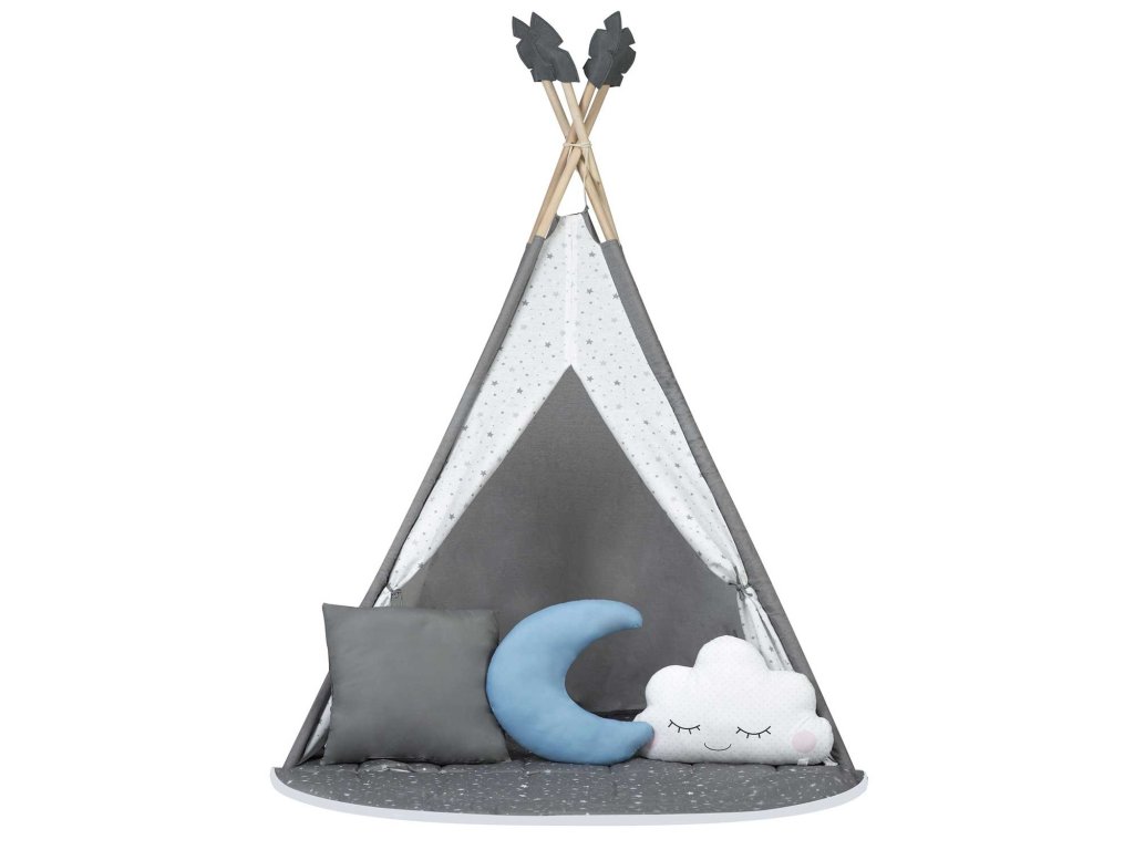Naše TIPI, vytvořené s láskou a péčí zkušeného designéra, je vyrobeno z nejkvalitnější bavlny, která zajišťuje vynikající propustnost vzduchu. Díky stabilní konstrukci a přidanému stabilizátoru se nemusíte obávat bezpečnosti vašeho dítěte. Toto kouzelné místo není pouze pro hraní – je také ideální pro klidný spánek, čtení pohádek nebo rodinné povídání. Sada obsahuje mnoho praktických doplňků, které promění každodenní hru v nezapomenutelné zážitky.