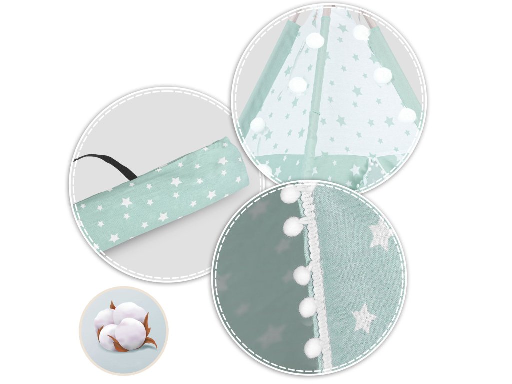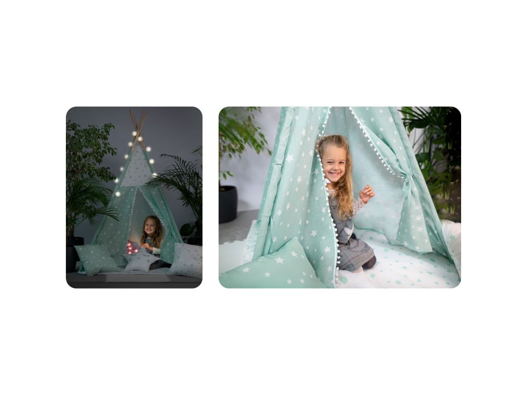 Tento stan je ideálním místem pro schovku, čtení oblíbených pohádek nebo pořádání malých indianských dobrodružství. Díky snadnému skládání a účinné úspoře místa ho můžete snadno přemístit a použít jak v interiéru, tak venku. S pevným rámem a kvalitními materiály, jako je prvotřídní bavlna a borovicové dřevo, je náš stan nejen esteticky příjemný, ale také odolný.