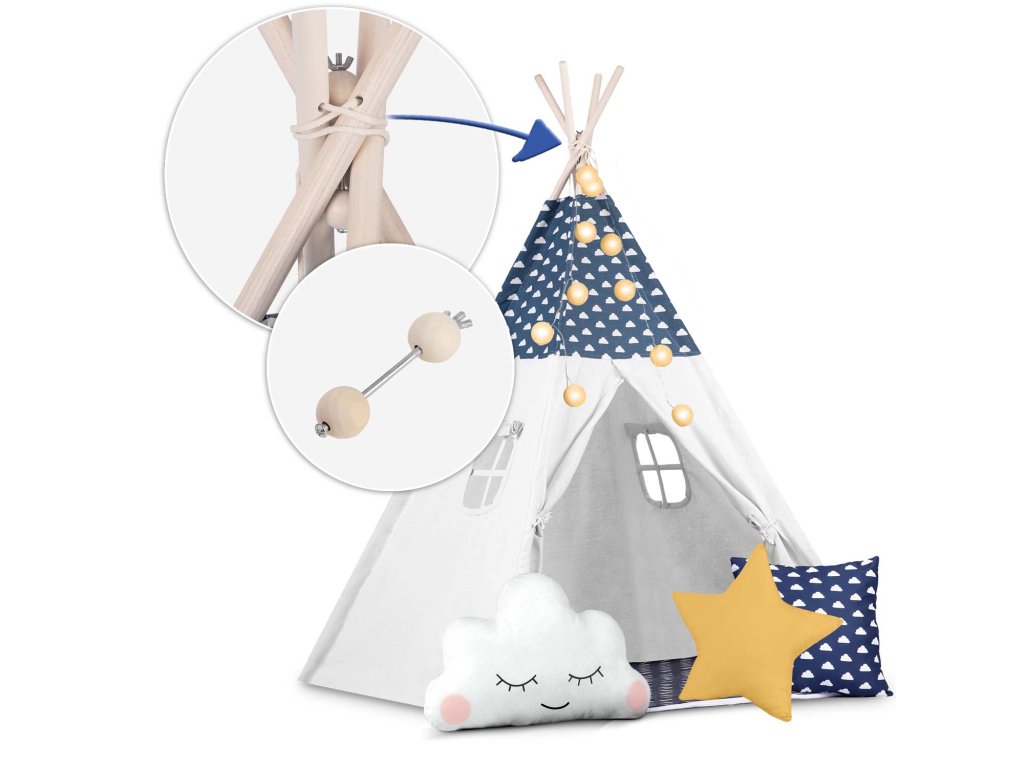Každé dítě si zaslouží svůj vlastní prostor pro kreativní hry a dobrodružství! Dětský stan ve tvaru indiánského týpí je ideálním útočištěm pro malé malíře, dobrodruhy a snílky. S jeho krásným designem a přírodními materiály se stane nejen skvělým prvkem dětského pokoje, ale i místem, kde vaše dítě zažije spoustu radosti a zábavy. Navíc, se sadou polštářků a izolační podložkou, se promění v kouzelné místo pro hry, odpočinek i čtení.