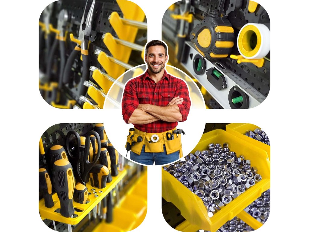 Už vás nebaví chaos ve vaší dílně nebo garáži? Ztrácíte drahocenný čas hledáním toho správného klíče nebo šroubku? Proměňte svůj pracovní prostor v dokonale organizovanou a efektivní zónu s naší špičkovou dílenskou nástěnnou deskou na nářadí HUMBERG! Je navržena tak, aby vám ušetřila místo a zajistila, že každé nářadí bude mít své pevné místo. Ať už jste profesionální řemeslník, nebo nadšený kutil, tato modulární deska je klíčem k pořádku, který zvyšuje vaši produktivitu a eliminuje frustraci z neustálého hledání.