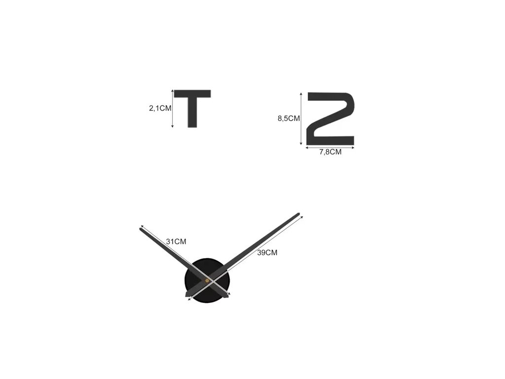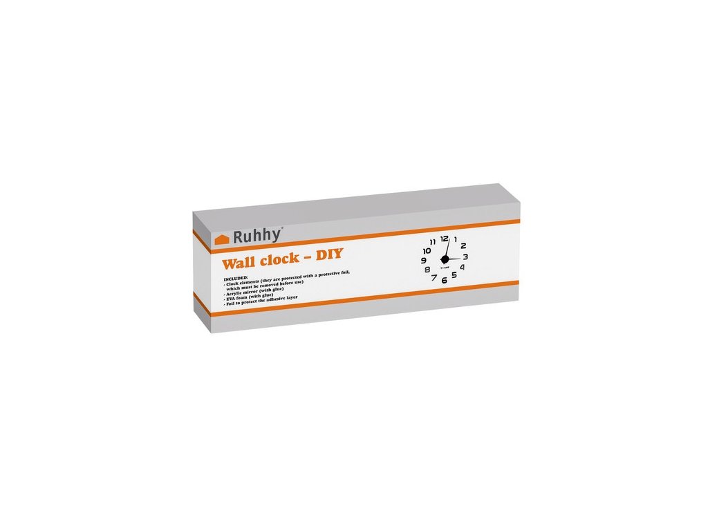 Hodiny pro vlastní montáž. Krásná a velmi působivá s vysokým leskem. Nejlépe vypadají hodiny s průměrem od 60 (ručičky blízko číslic) do 130 cm. Jednotlivá čísla jsou nalepena na samolepící pásce. Hodiny se hodí do každého interiéru, zejména do podkroví.