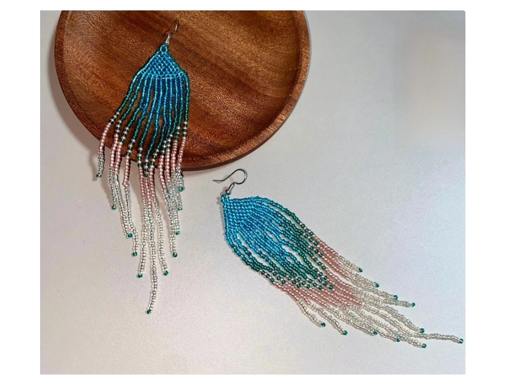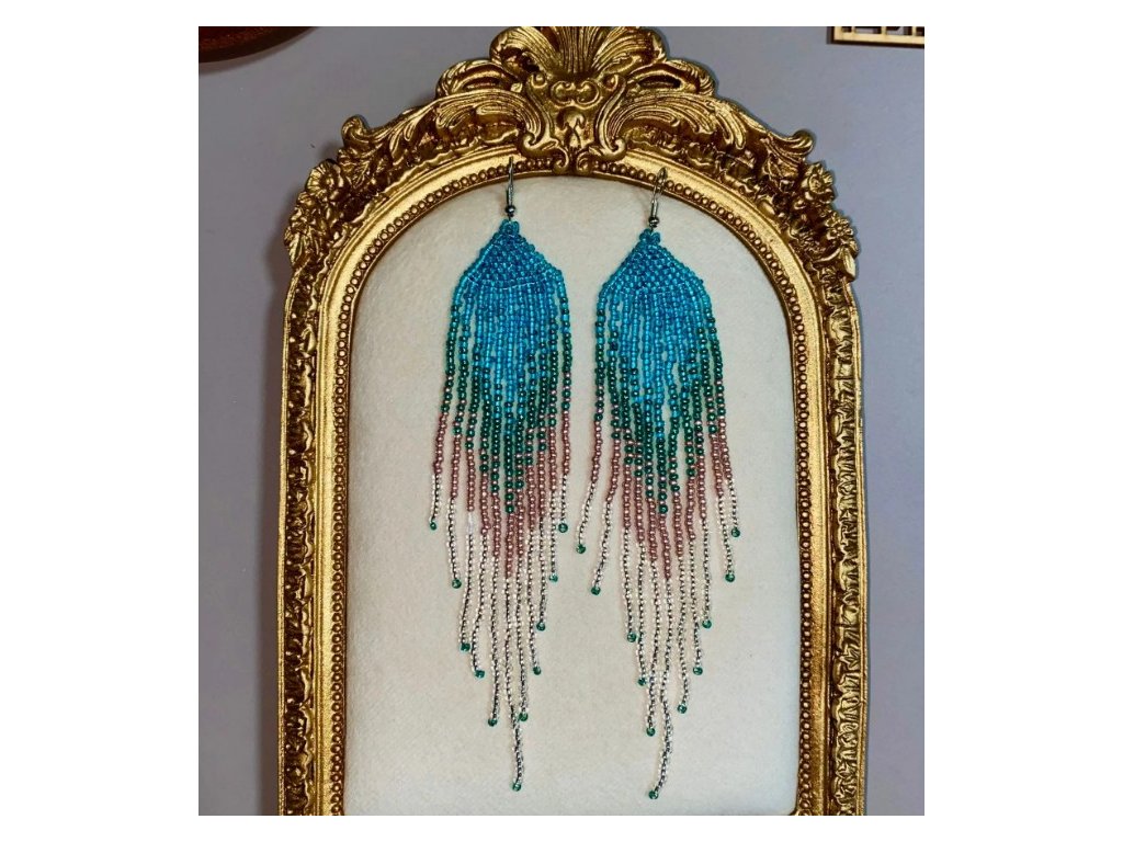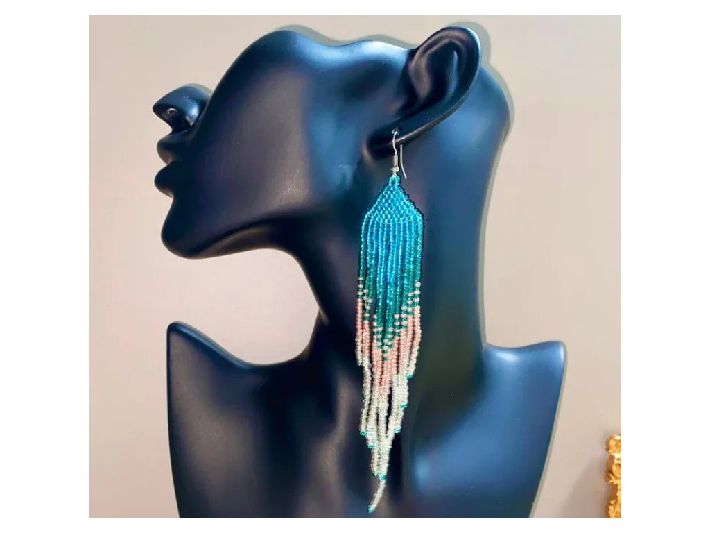 Ručně pletené korálkové náušnice v dechberoucím gradientním stylu. Jedinečný bohémský doplněk, který díky své délce a zářivým barvám rozzáří každý outfit a dodá mu nádech exotiky a nespoutanosti.