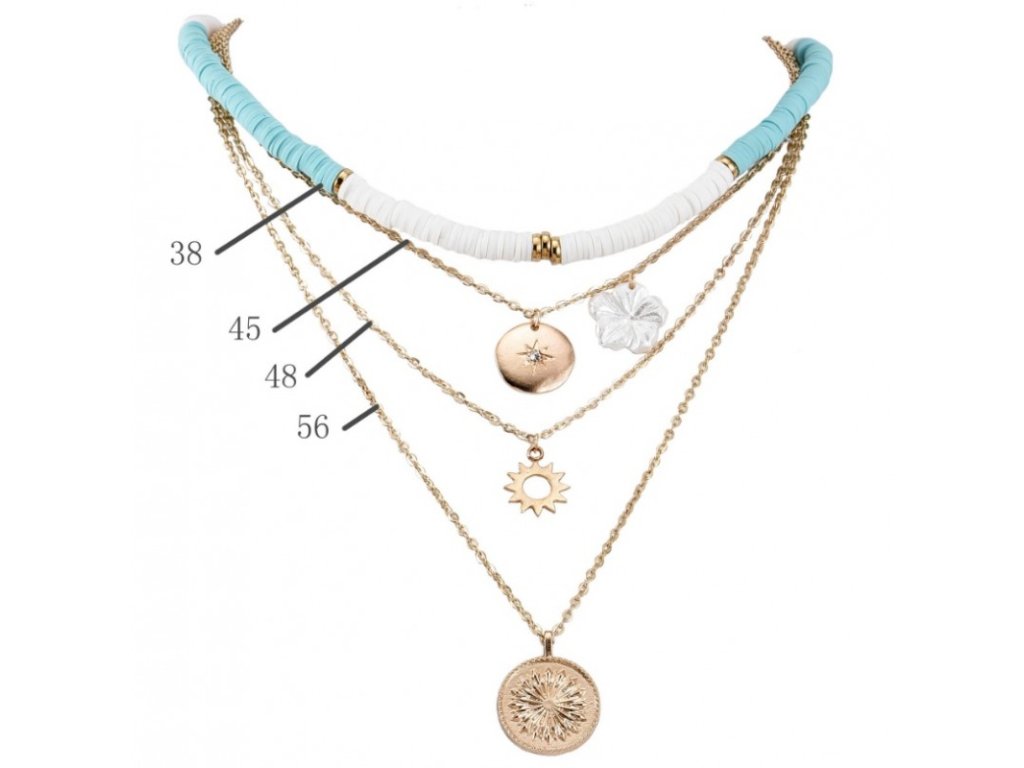 Objevte kouzlo tohoto dlouhého náhrdelníku N757, který je skvělým doplňkem pro každou ženu. Tento náhrdelník je vyroben z vysoce kvalitního obecného kovu a jeho zlatá barva dodá vašemu outfitu luxusní vzhled.